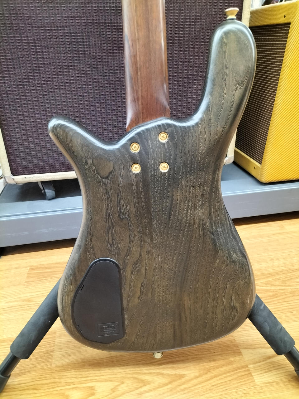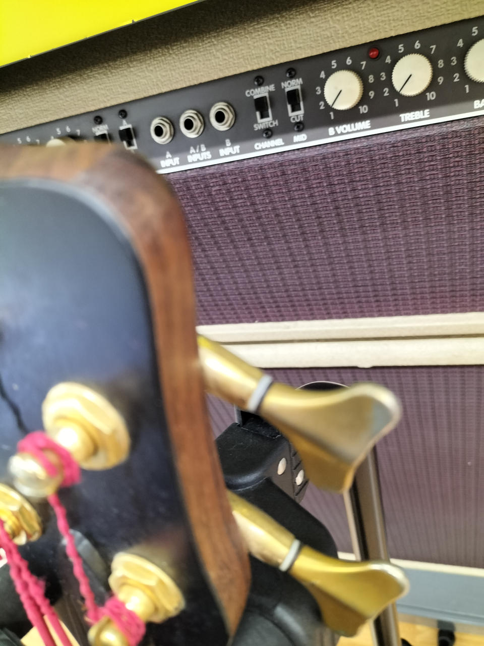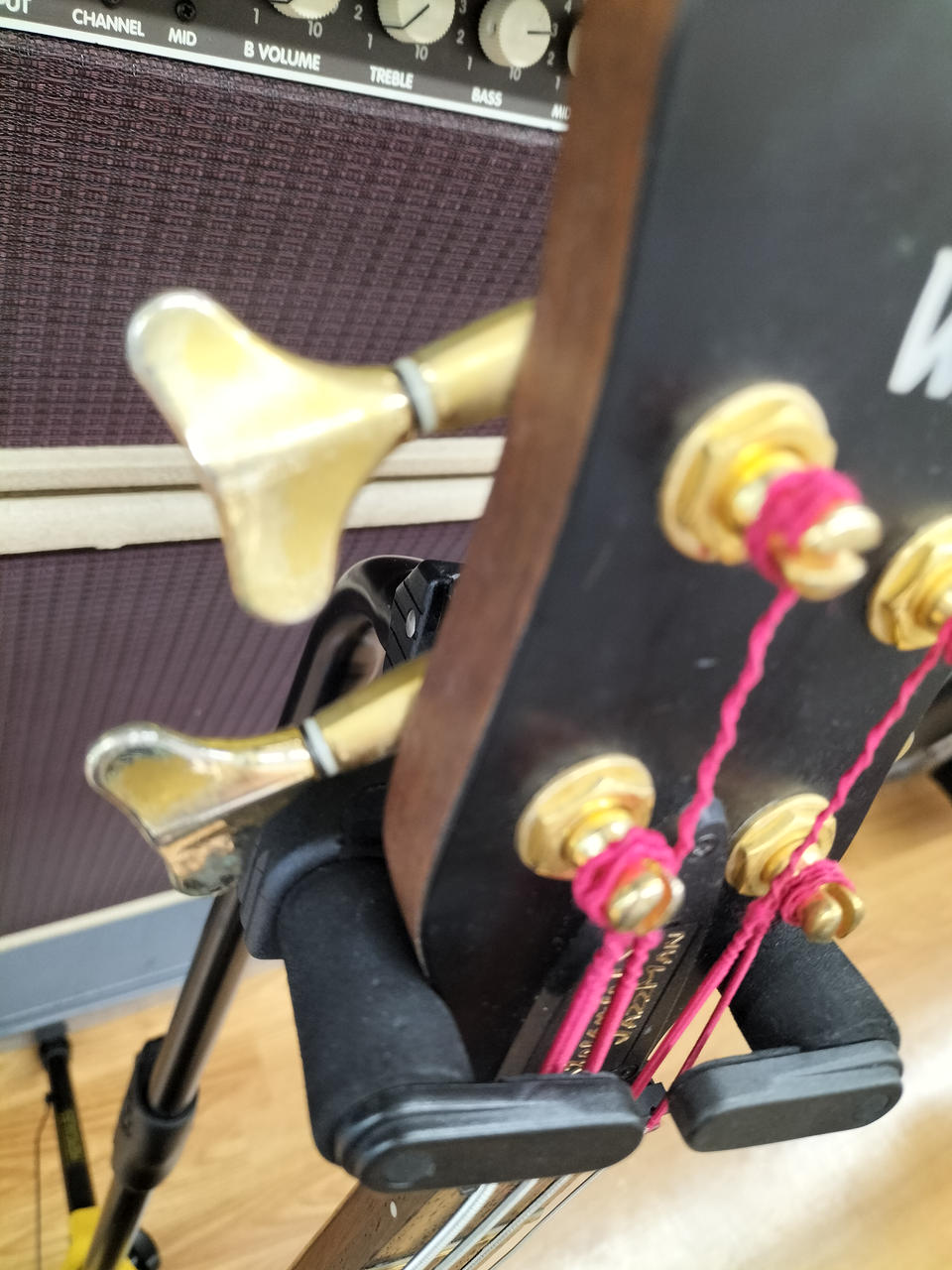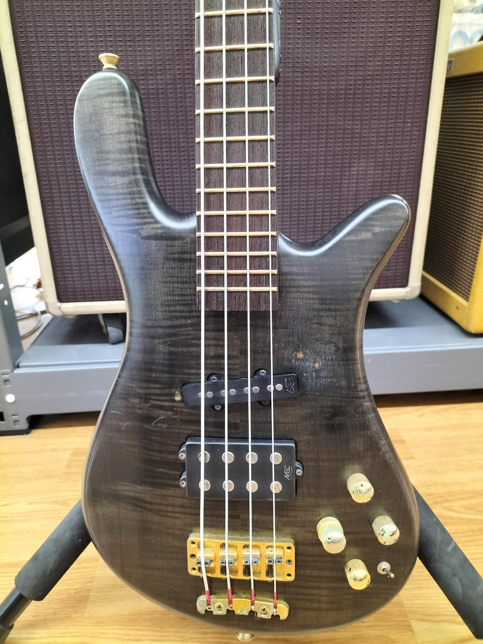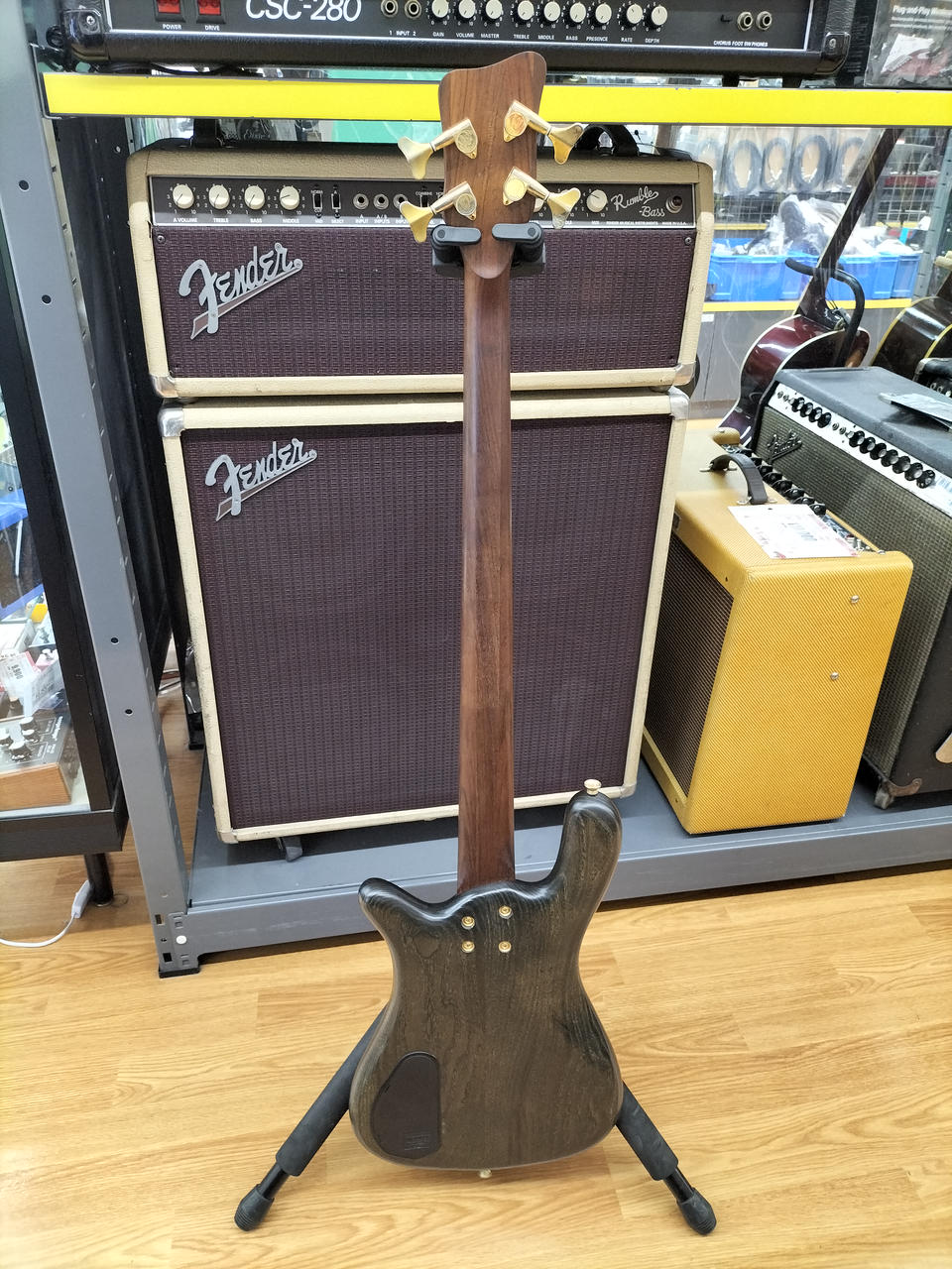 弾きやすいセッティングで演奏するにはネックの矯正が前提になる状態です。 |