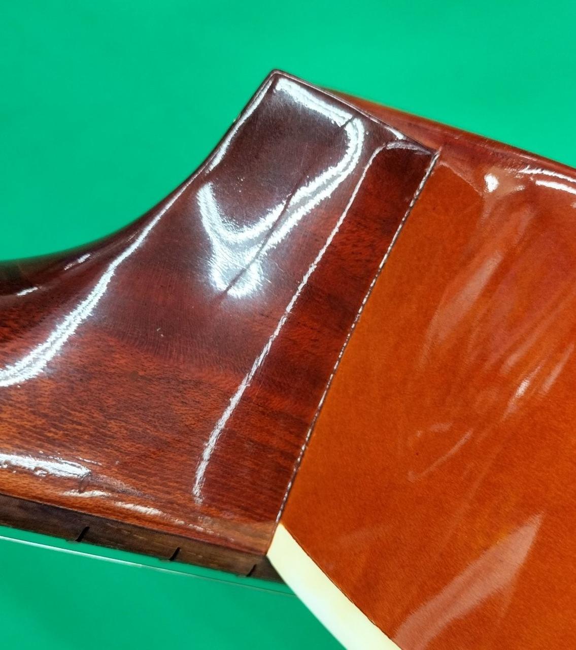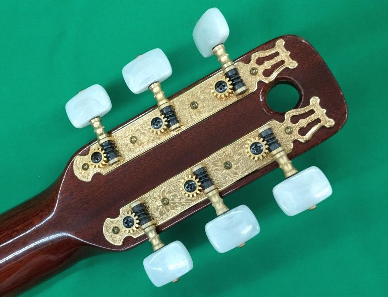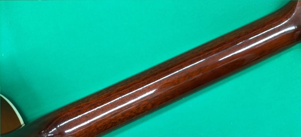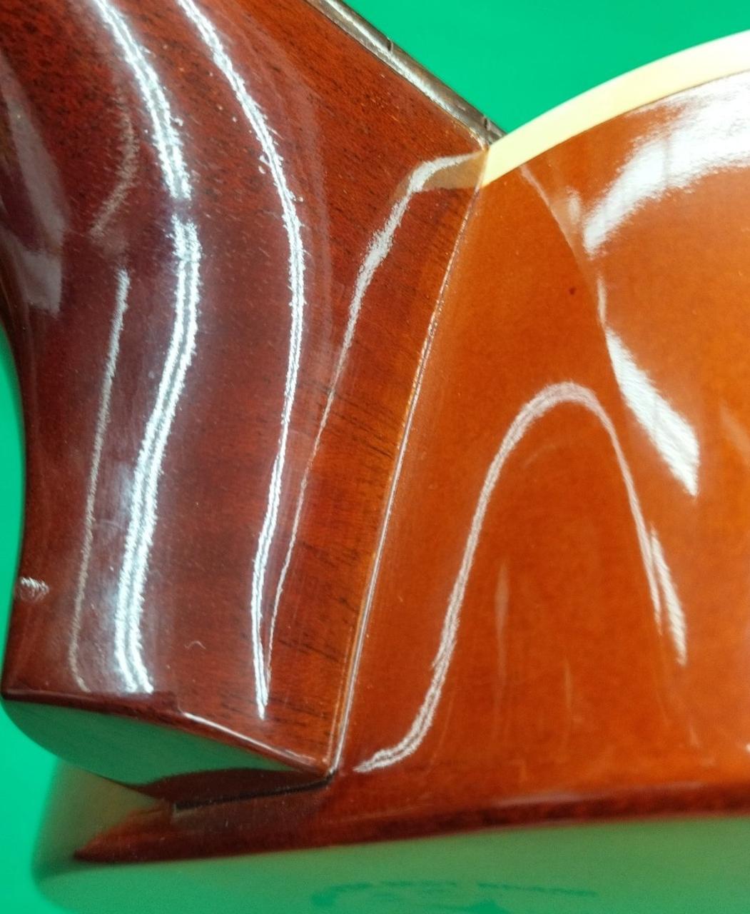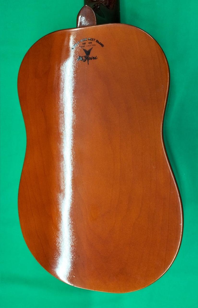 ボディトップ、サウンドホールとブリッジの間、若干へこみ。 |