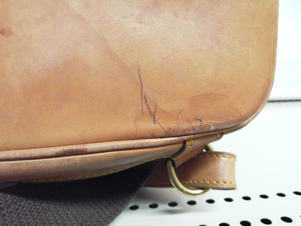 ヌメ革部分にシミ、キズ、ボールペン跡あり