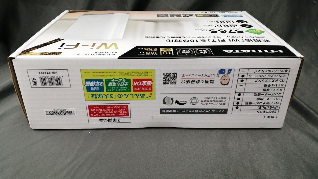 化粧箱・説明書・LANケーブル・ACアダプター・設定情報シート |