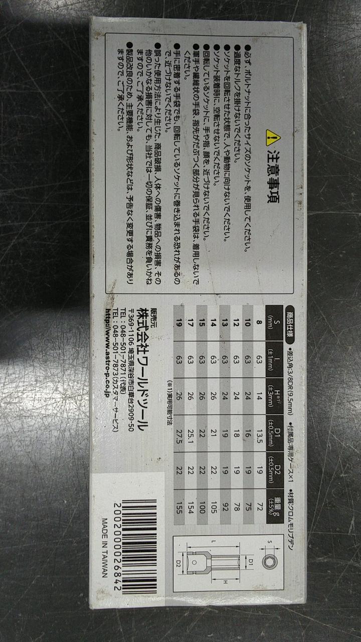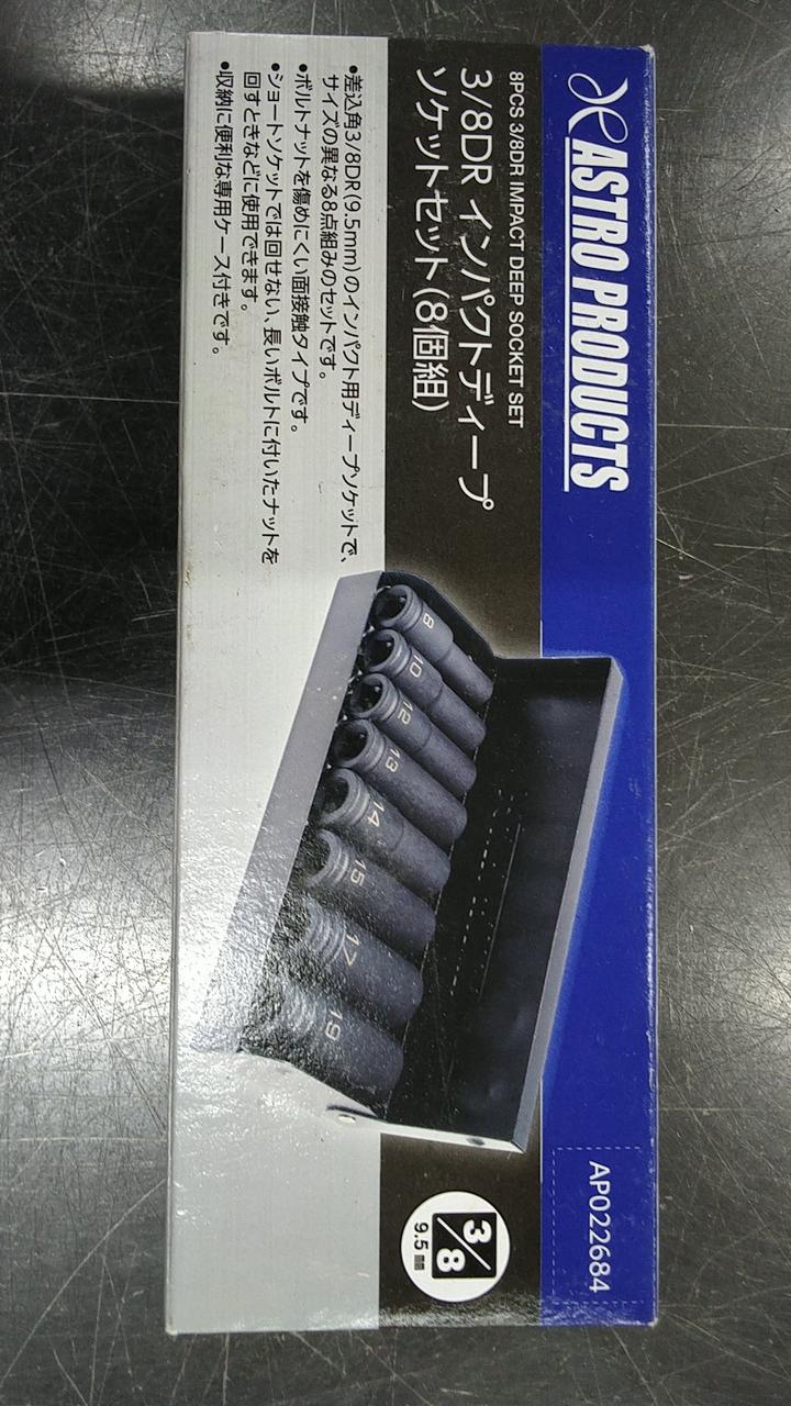 差込角3/8DR(9.5mm)のインパクト用ディープソケット |