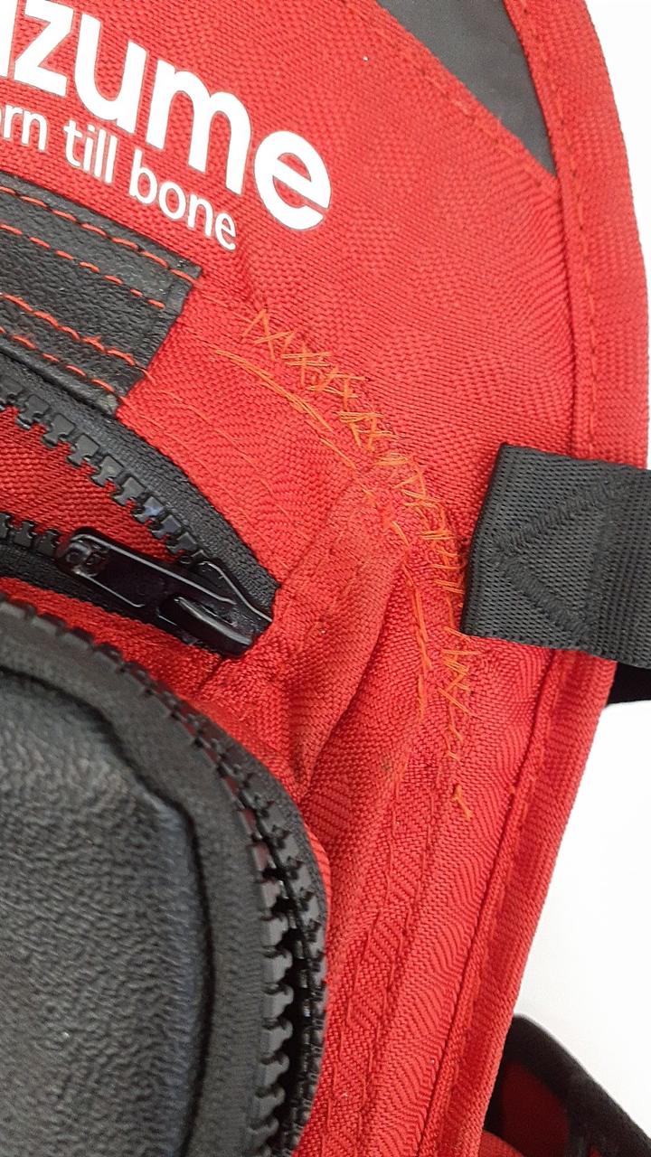 左ポケットに縫い直しがあります。使用感があります。