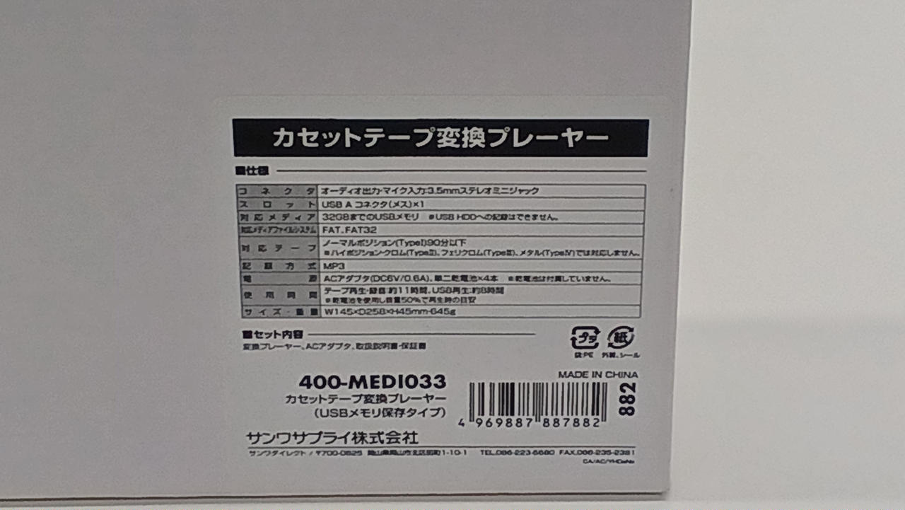 カセットテープの音源をUSBに保存できる変換プレーヤーです。 |
