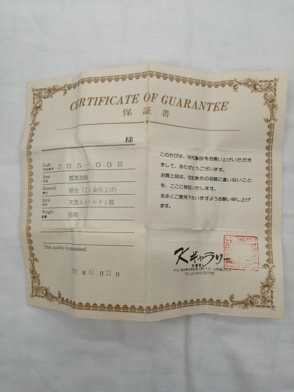 保証書付き |