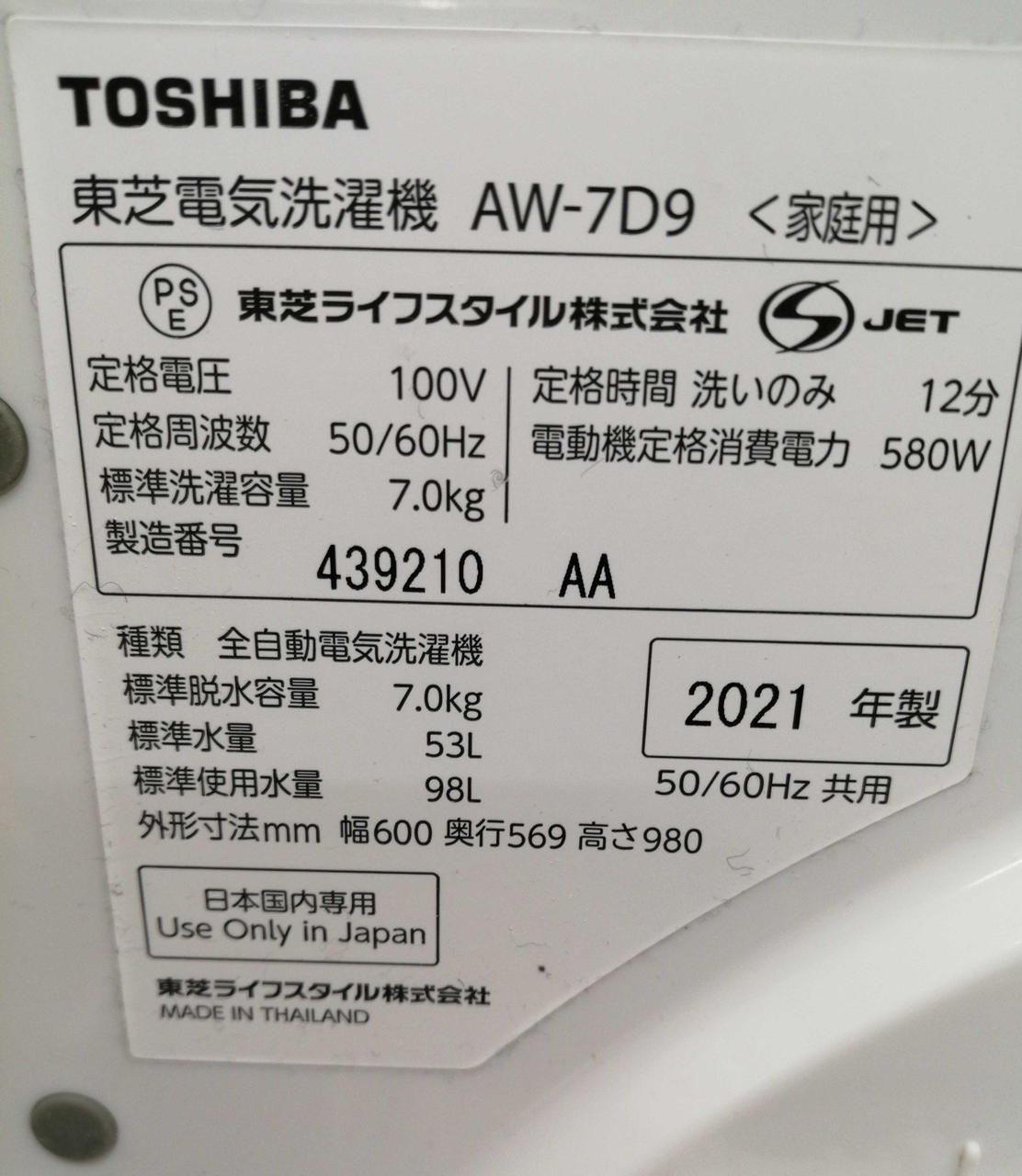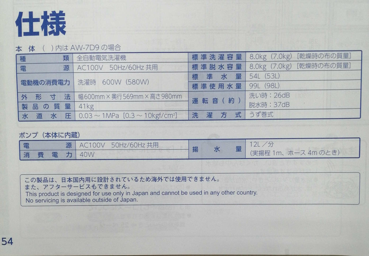 | 洗濯容量(kg) |