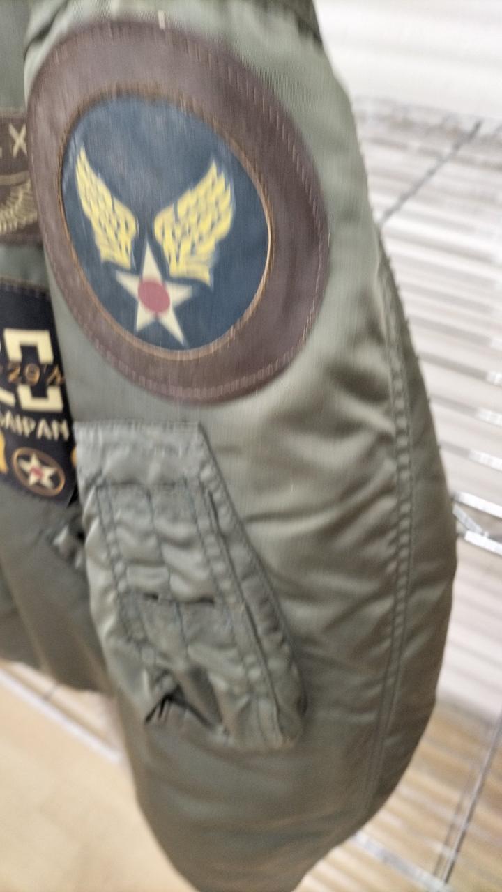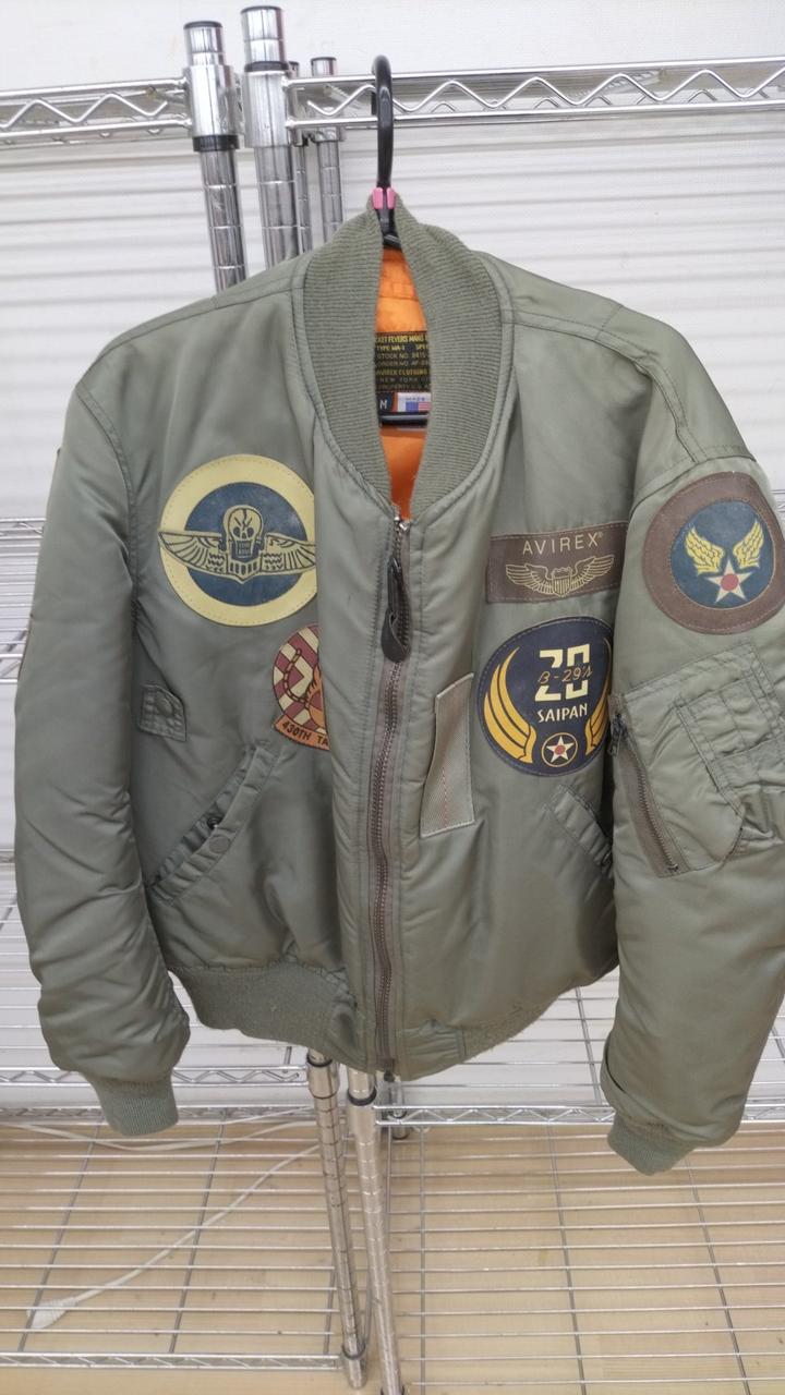 AVIREXから発売されたトップまガンをモデルに作られたフライトジャケット!シミ汚れや毛玉やワッペンに汚れが多く見受けられますがまたそれがDANGERZONEみたいにかっこいいかも