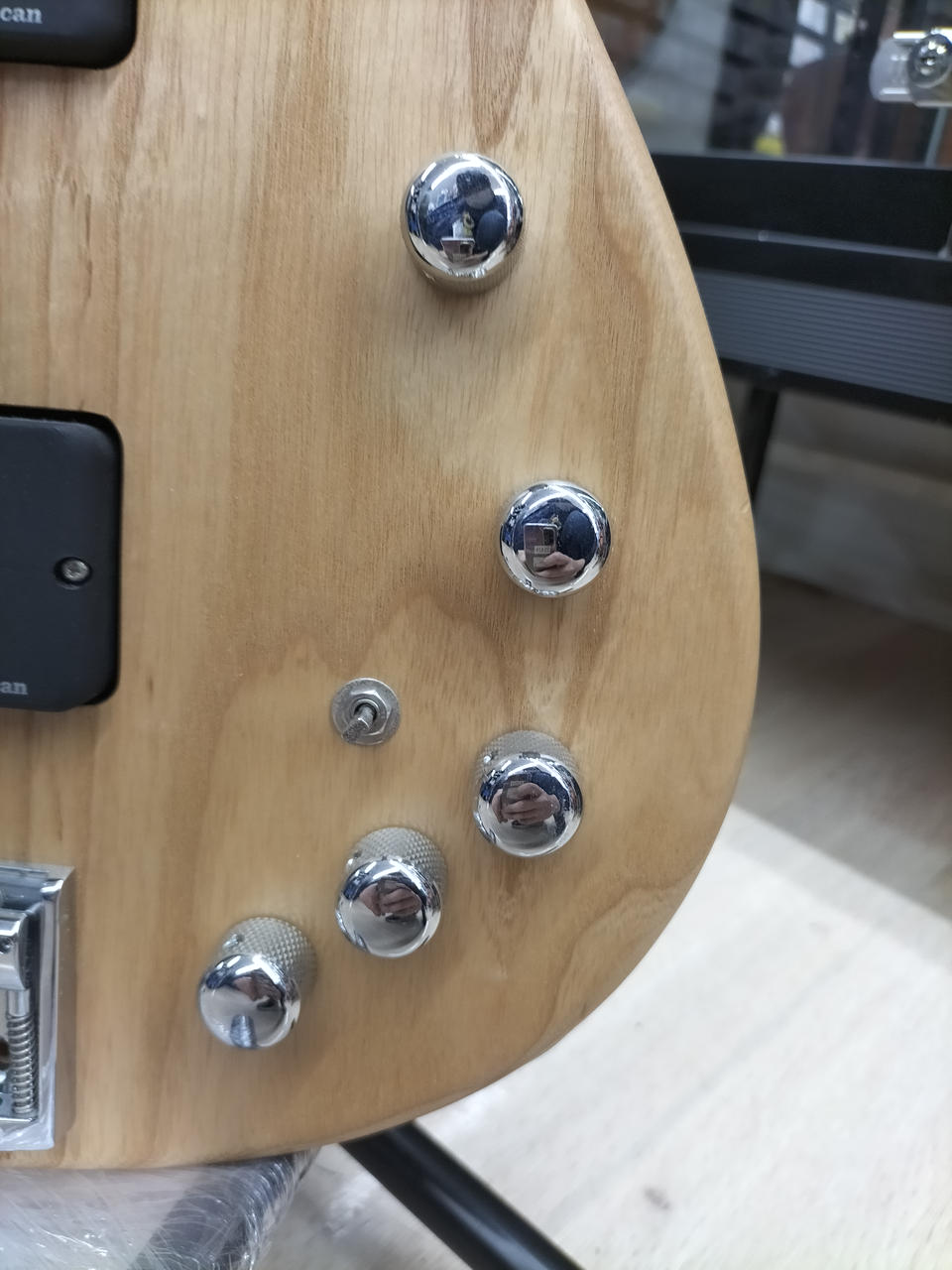 ダンカンハムバッカーSMB-5Dを2基搭載しアクティブ回路STC-3M4と組み合わせてます ・ボリュームはスイッチポットで中音域カットが可能 |