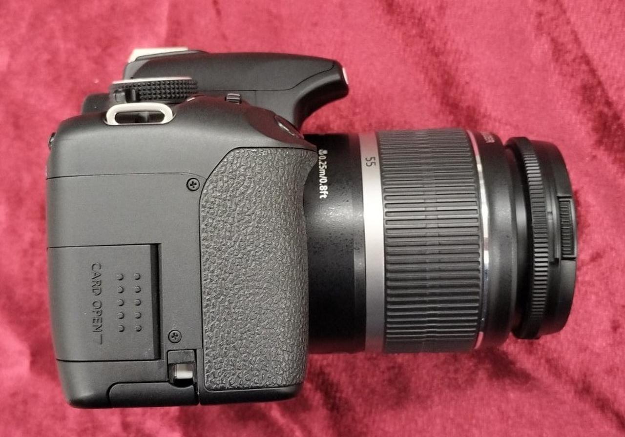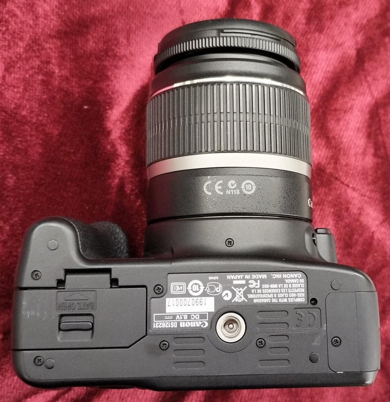 有効1510万画素 キャノンEFマウント APS-C JPEG/RAW 3型LCD SDHCカード対応 レンズEF-S18-55mm 1:3.5-5.6 IS ※バッテリ容量保証なし 付属品:充電器 バッテリ(純正1ケ/社外2ケ) AVケーブル USBケーブル ストラップ |