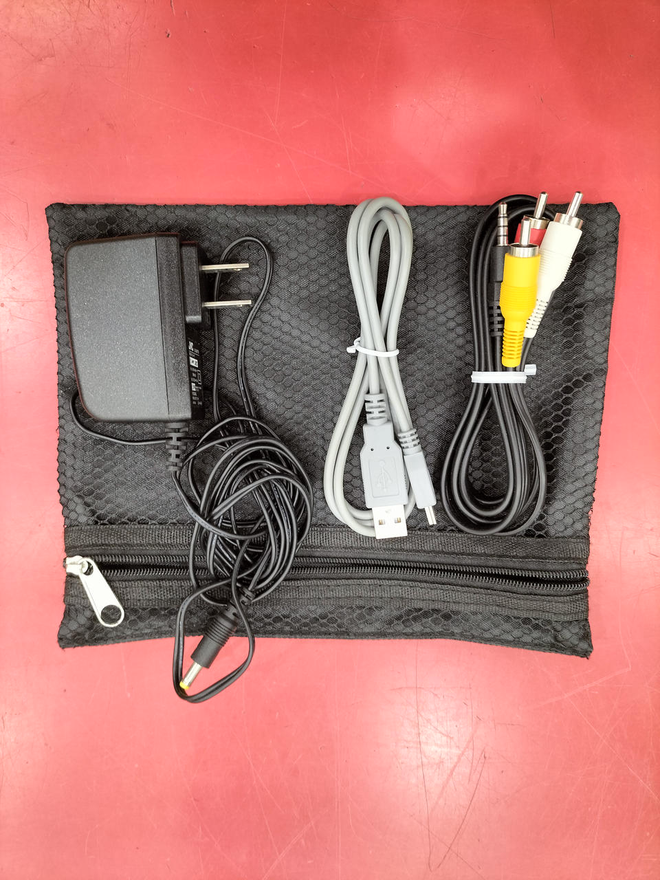 電源アダプタ、接続ケーブル、3色ケーブル、ケース、バッテリー(保証外)付き