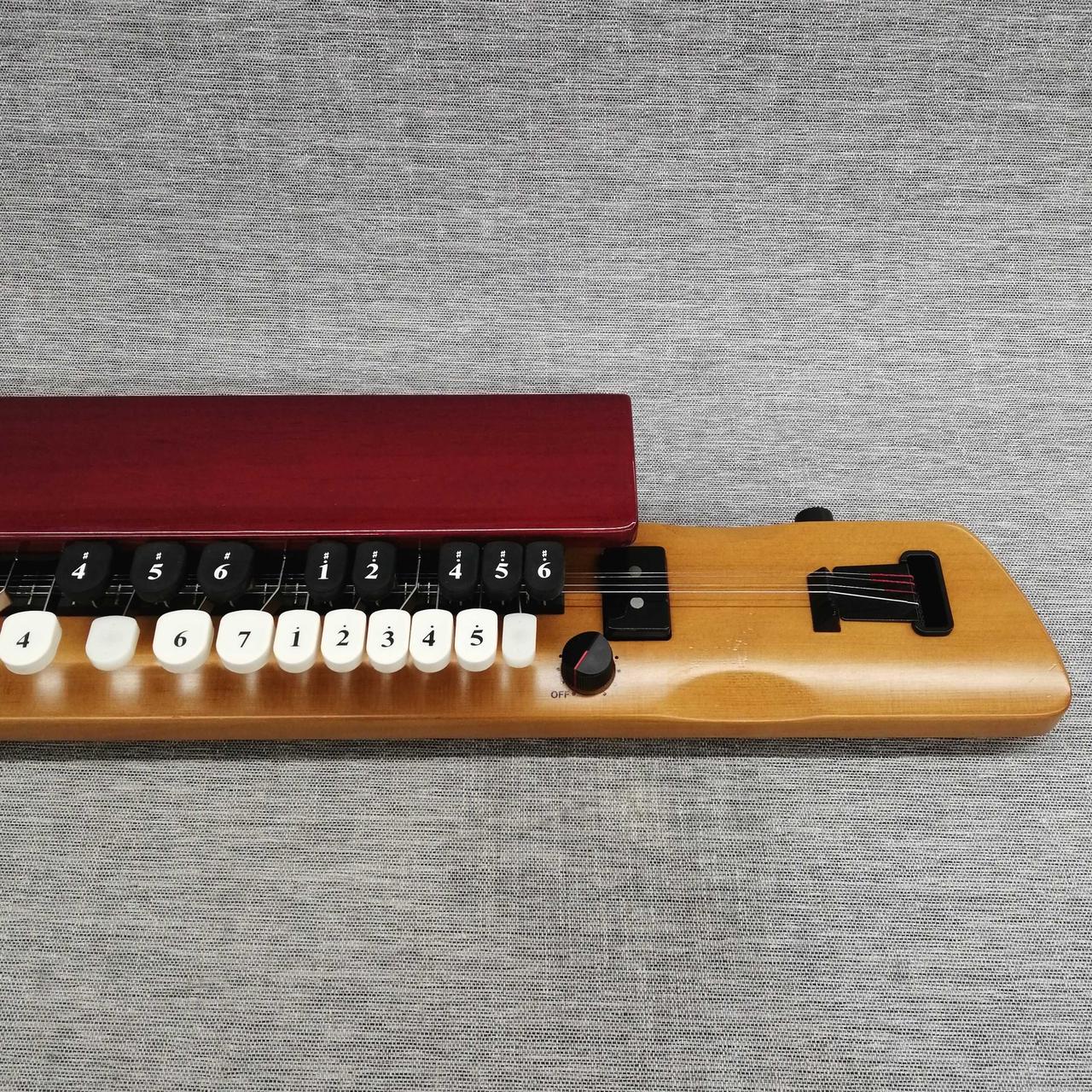 弓弾き演奏できるエレクトリック大正琴 ピックをつかうとマンドリンのような音も出ます |