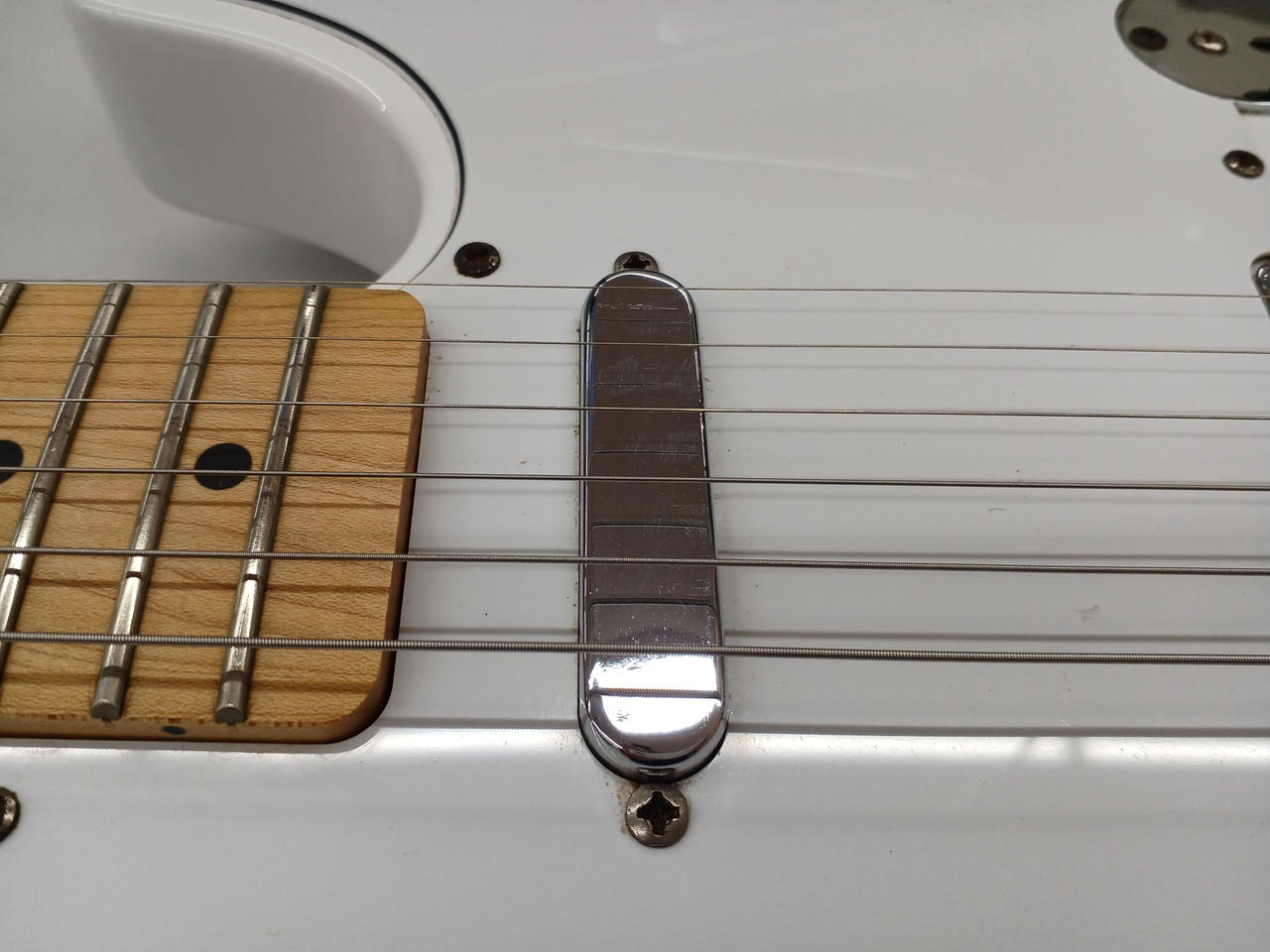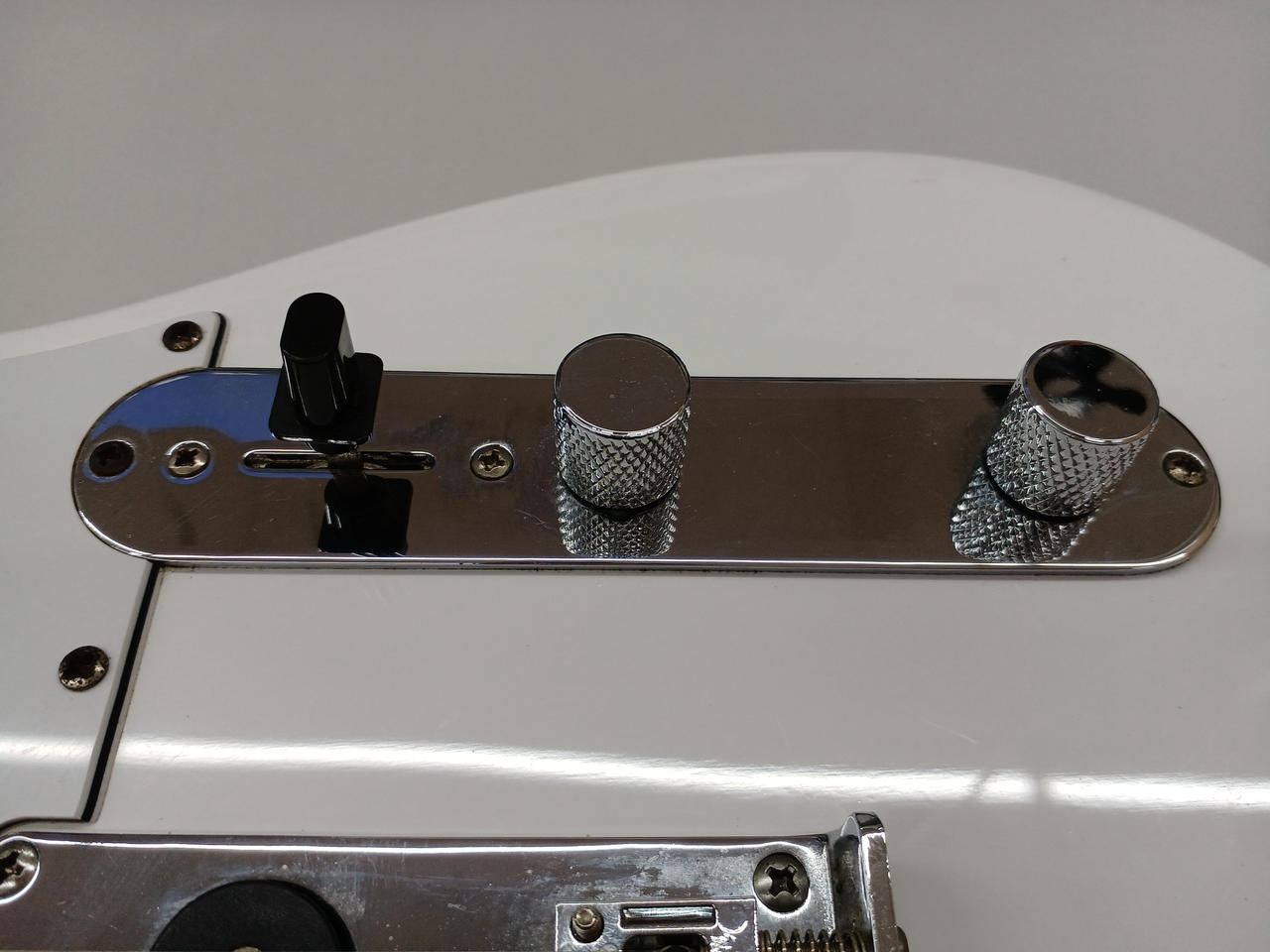 3ウェイスイッチングのSquier Single-Coil Telecasterピックアップを2基搭載。 |