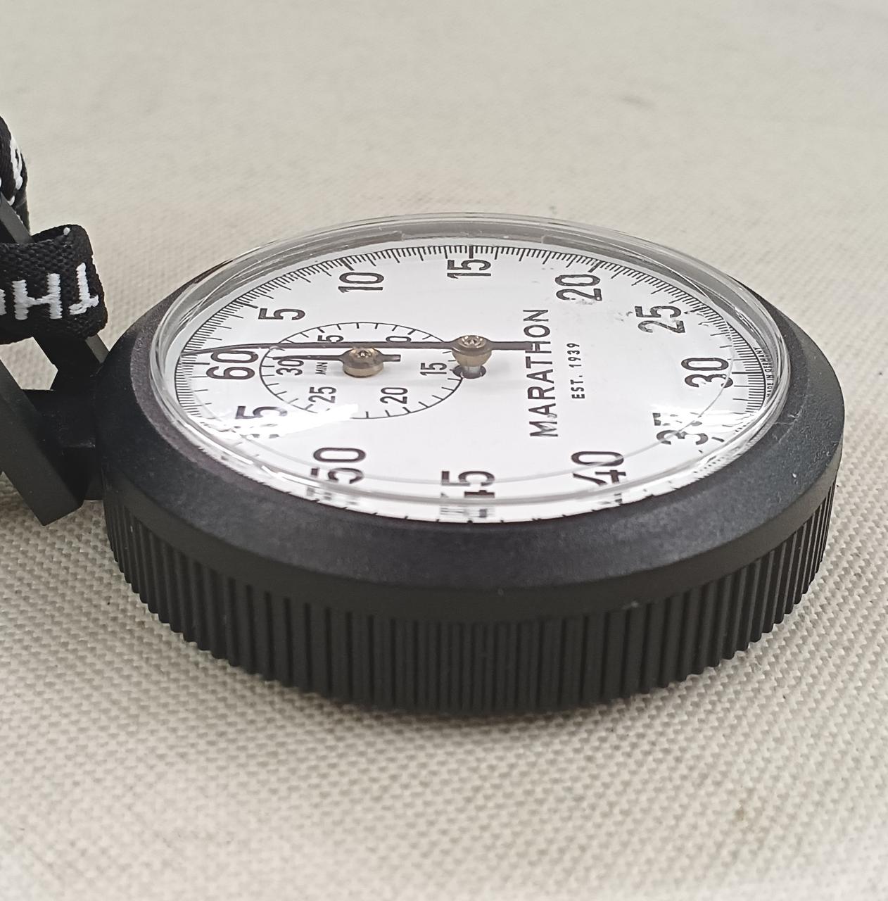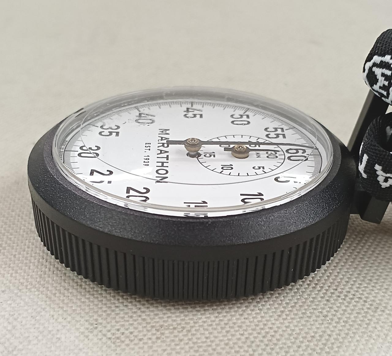 シングルアクション(ワンプッシュ)の機械式(手巻き)アナログストップウォッチ |
