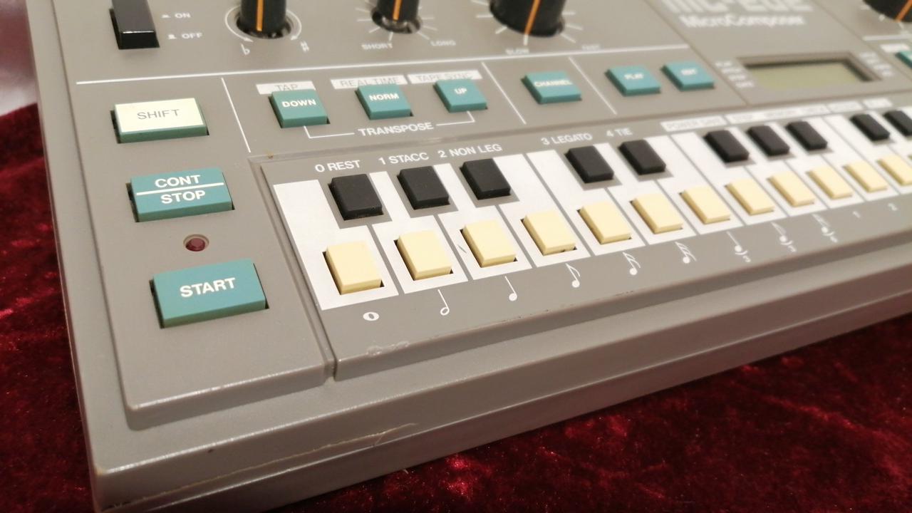 1983年頃発売、SH-101とほぼ同じ音源を搭載したモノフォニックシンセ。外部音源接続可能、デジタルシーケンサー搭載など、当時としては画期的な機能性でした。 |