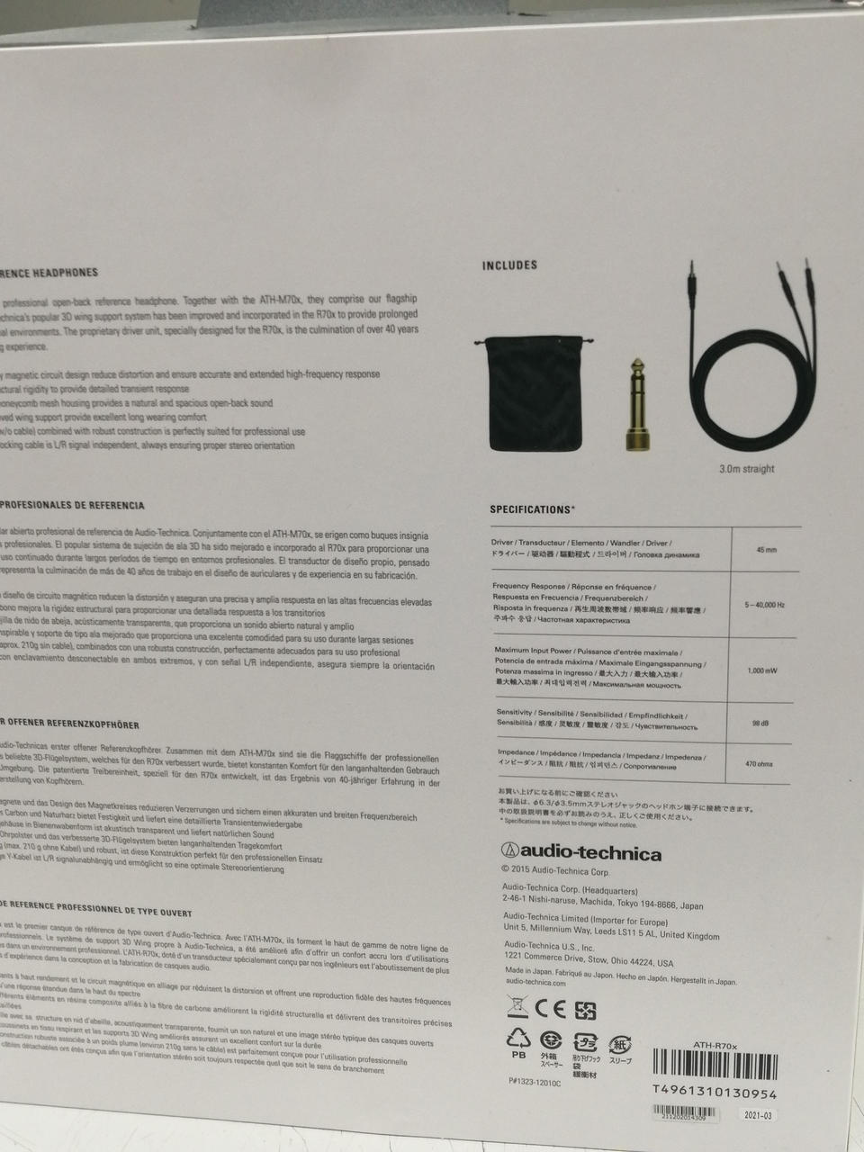 オーバーヘッド型有線ヘッドホン インピーダンス:470Ω 再生周波数:5HZ~40KHZ |