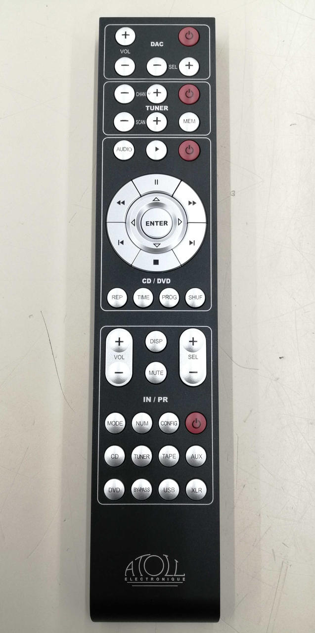 再生周波数帯域:5Hz~100KHz 出力:50W+50W(8Ω)、70W+70W(4Ω) 出力:1系統(TAPE OUT)、PRE OUT×2系統 入力:RCA×5系統 バナナプラグ対応SP端子 手頃な価格で真にハイエンドなオーディオ製品を製作するフランス生まれのATOLL |