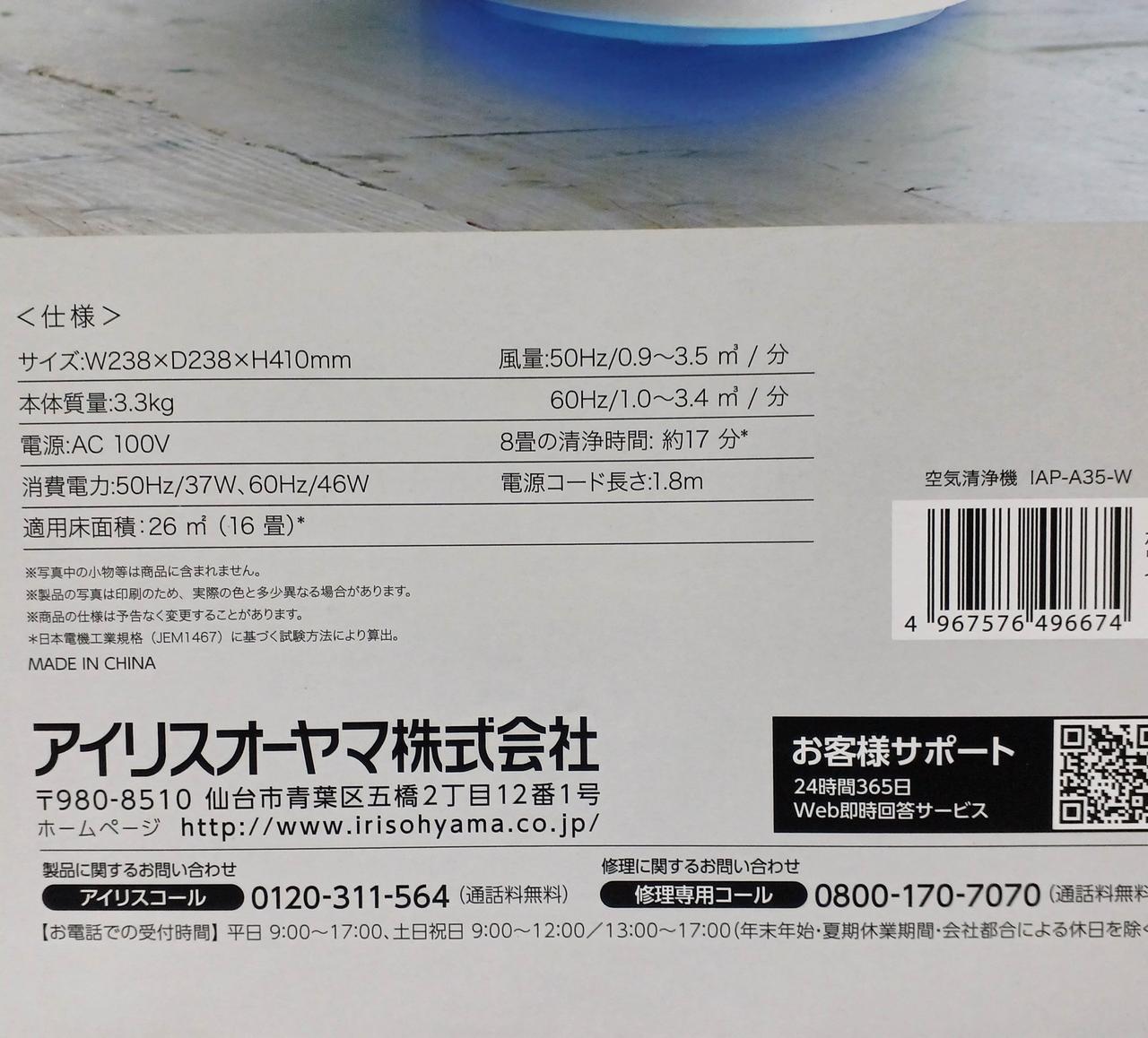 脱臭機能:○ PM2.5対応:○ |