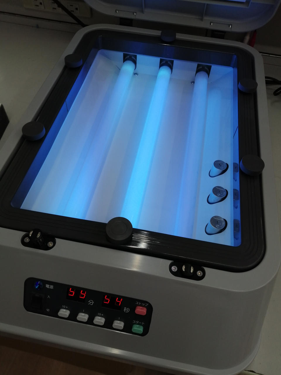 ワイド製版機は通電・発光確認済みです。 |
