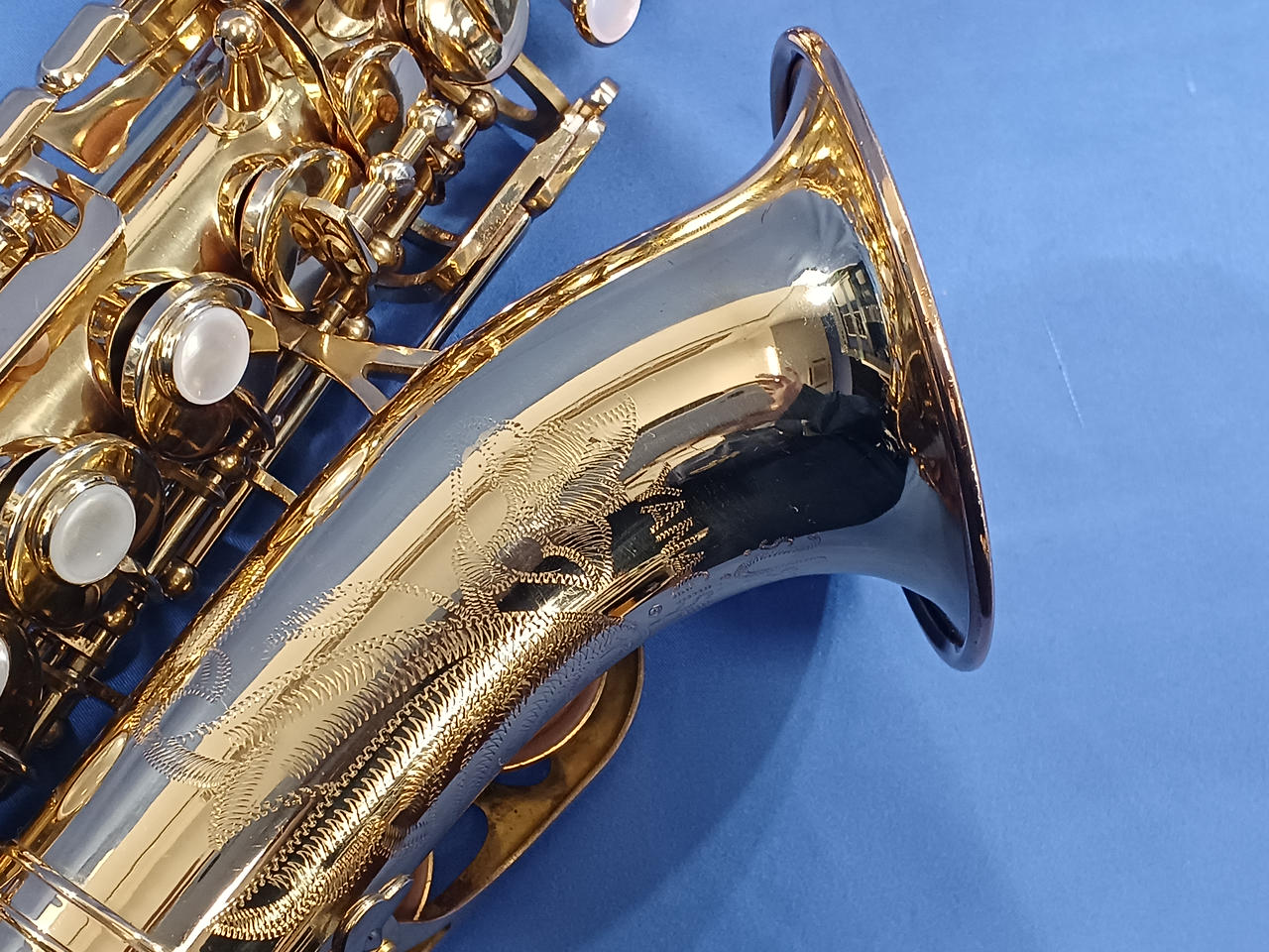 曲がった形状のソプラノサックスで貴重な初期モデルです! |