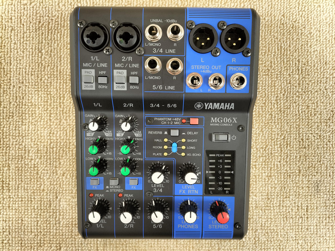 MGシリーズ初の6CHモデル。6プリセットのエフェクトを搭載。最大2MC/6LINE入力(2モノラル+2ステレオ)