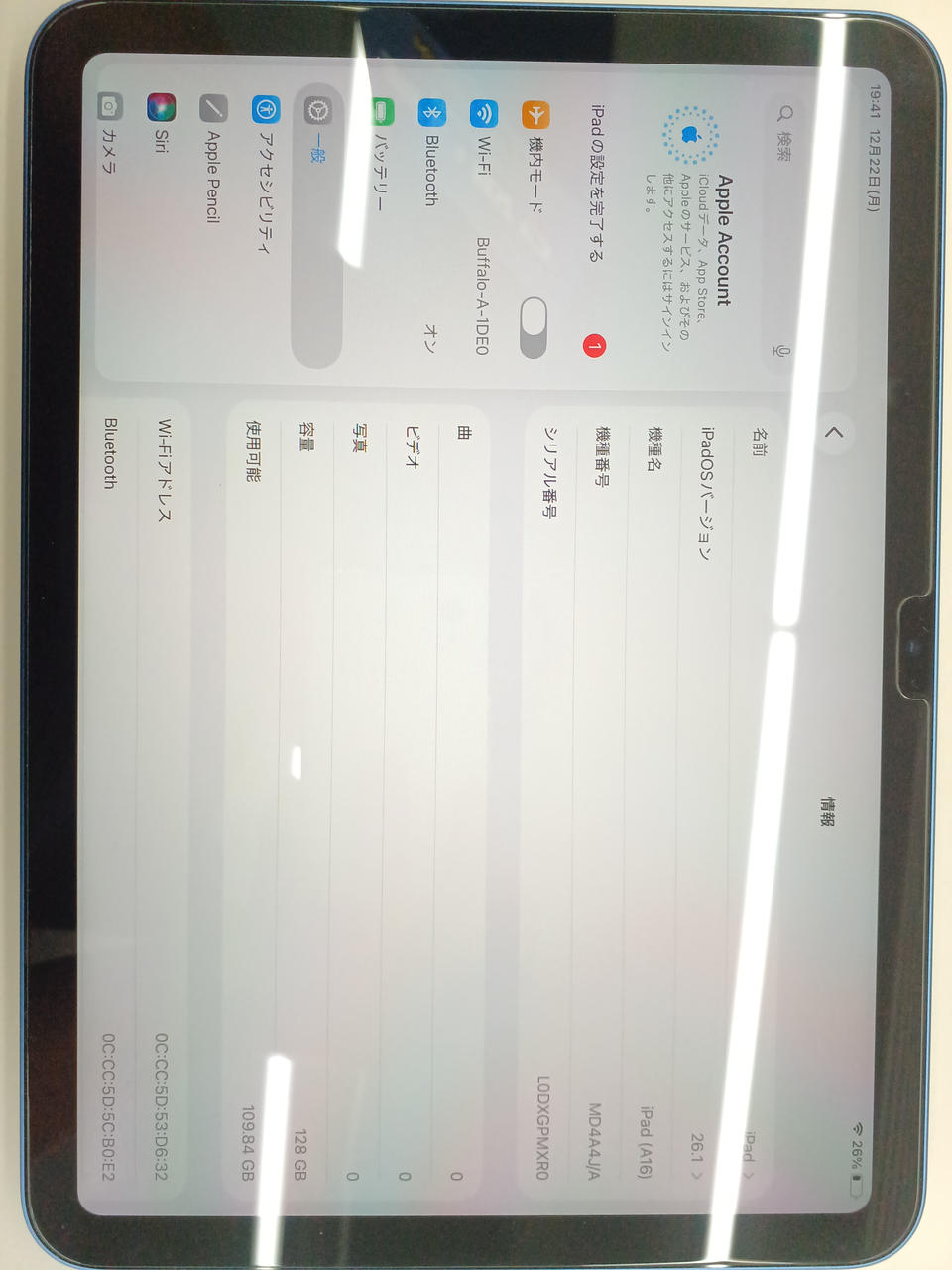 IOS・26.1CPU:APPLE A16 RAM:6GBストレージ:128GB |