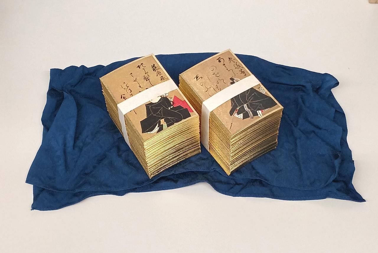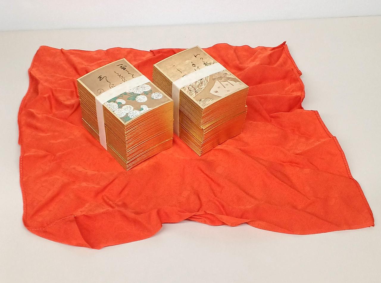 読札、取札、計200枚揃っております(札の帯留め直ししています) |