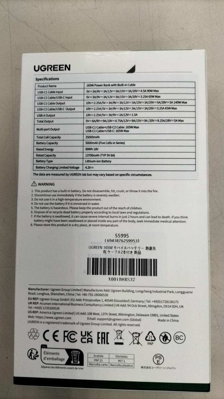 型番:POWER BANK WITH BULIT-IN CABLE