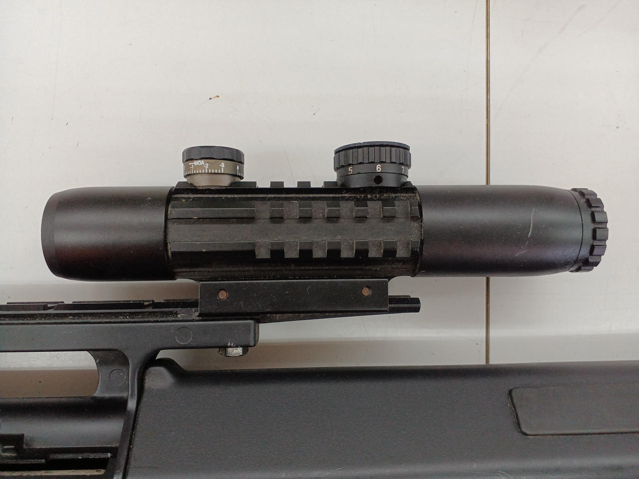 サビが付いてます。サプレッサーとスコープが付いてます。 |