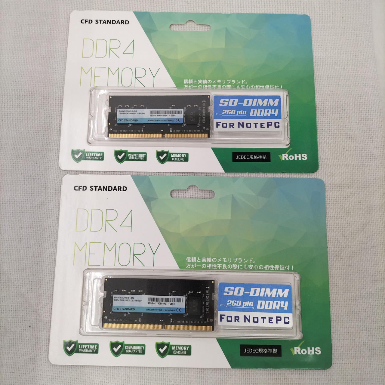 DDR4 PC-25600 CL22 8GB の2枚セット |