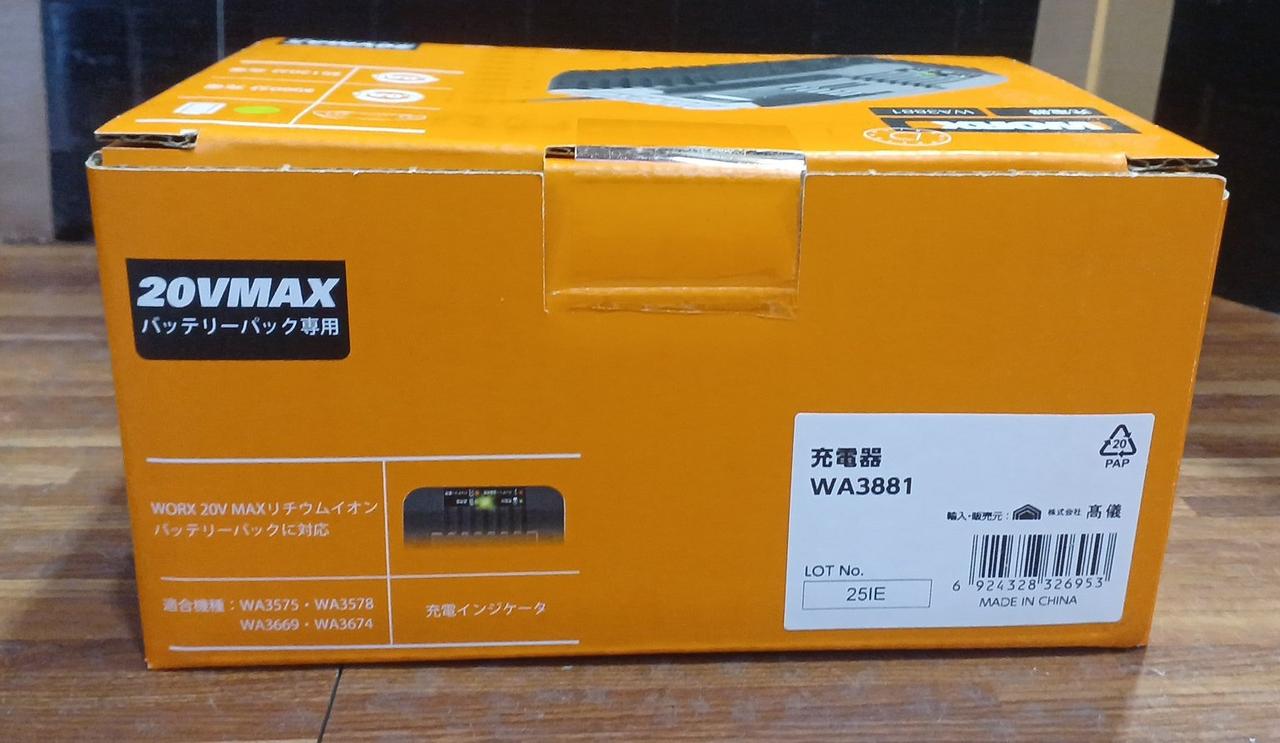 WORXの20Vバッテリー(2.0Ah)と充電器のセット |