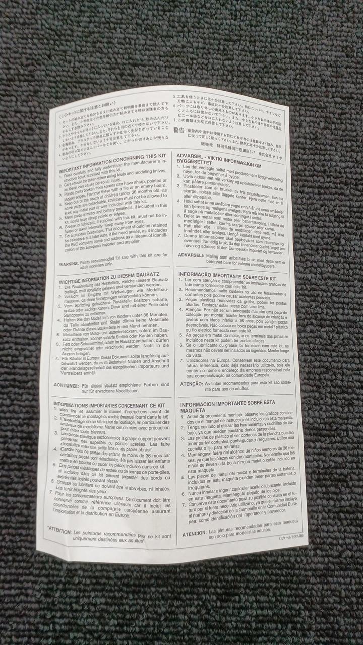 箱、取説、デカール、各パーツにヨゴレあります。特にゴムのパーツは劣化している可能性がございます。 |
