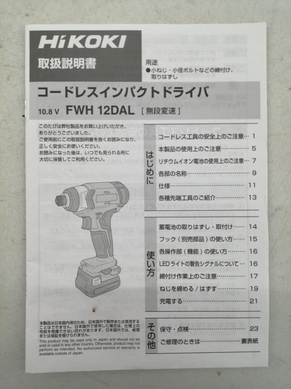 小形・軽量な10.8V電池にスライド式が新登場。着脱が簡単です。無負荷回転数:0〜2,700min -1(回/分) 打撃数:0〜3,200min -1(打撃/分) 締付トルク: 最大110N・m |