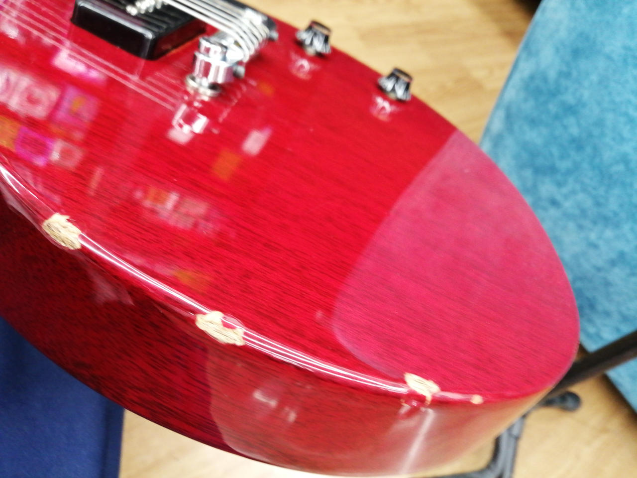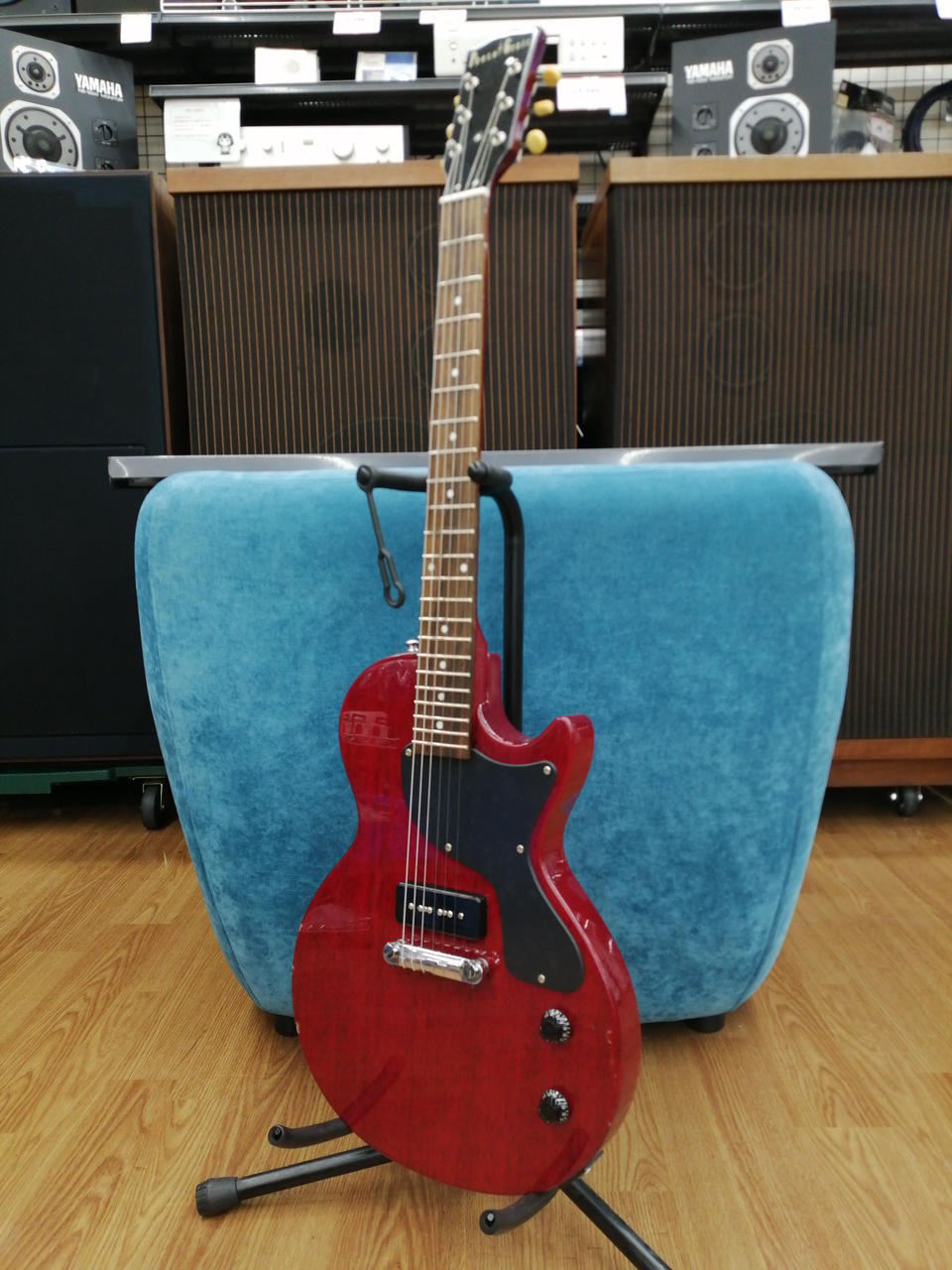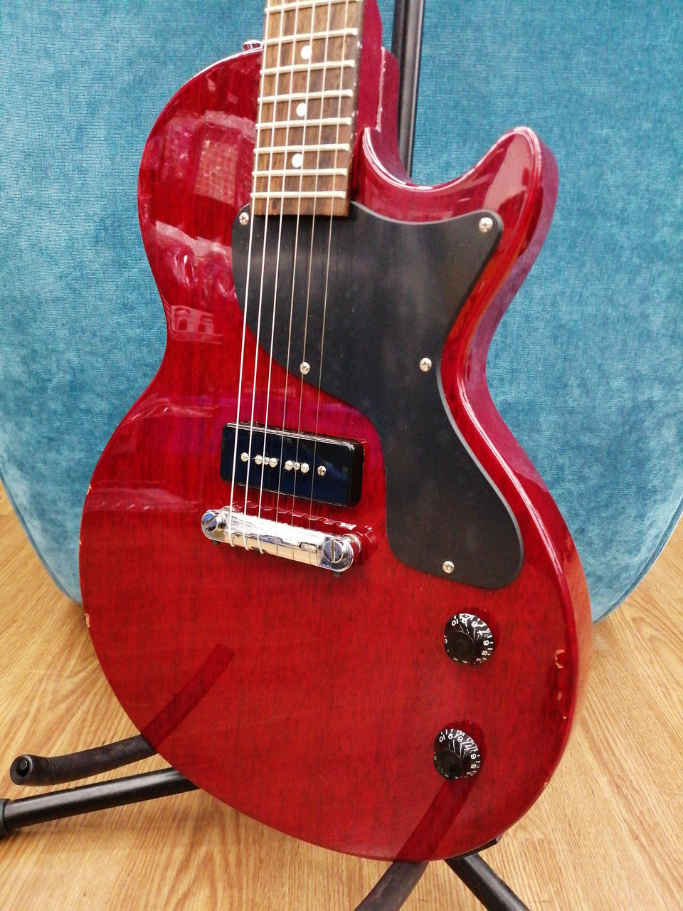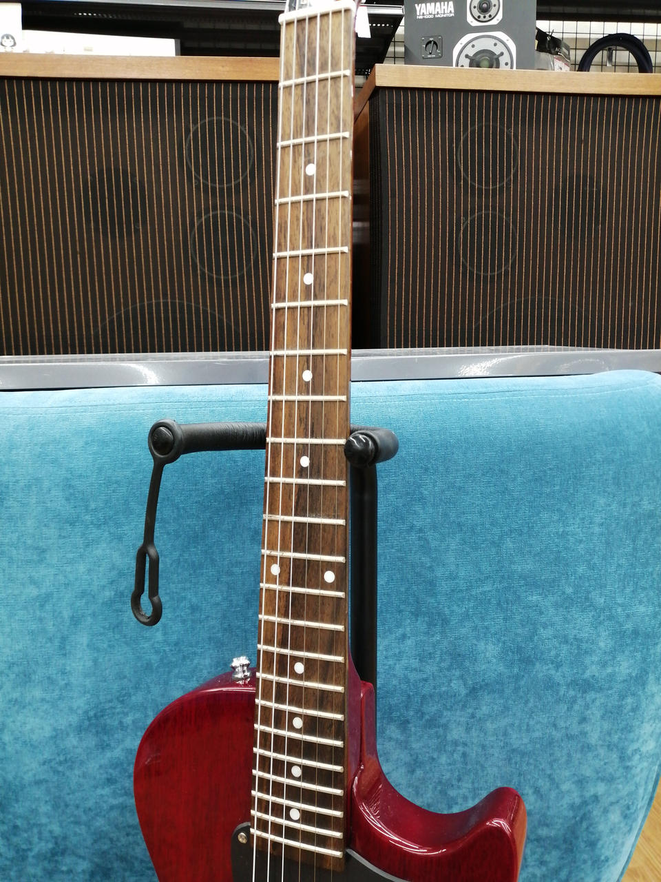P-90タイプ一発、シンプルなコントロールですが、これで手元だけで音色をコントロールしていると抜群にカッコイイ! |