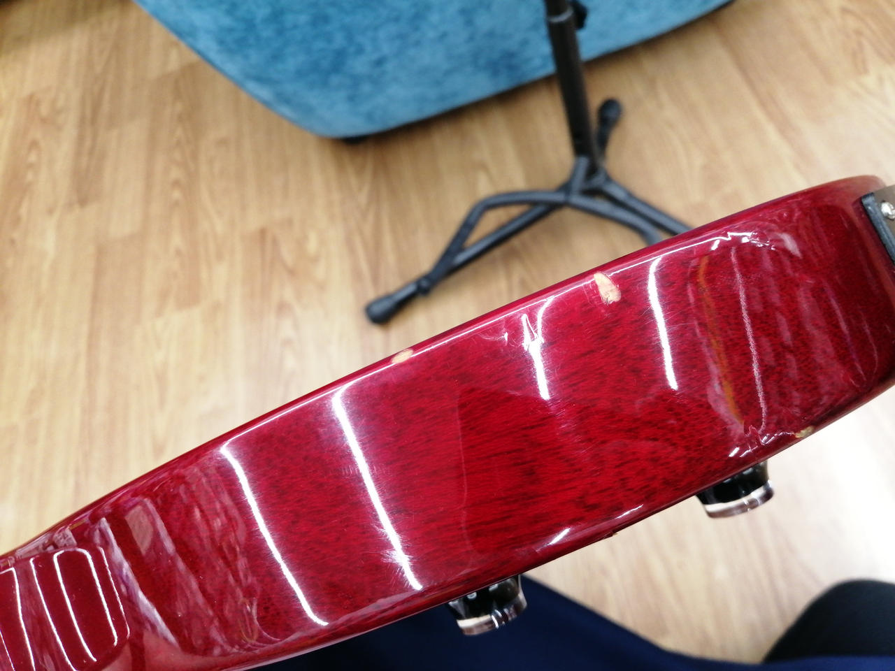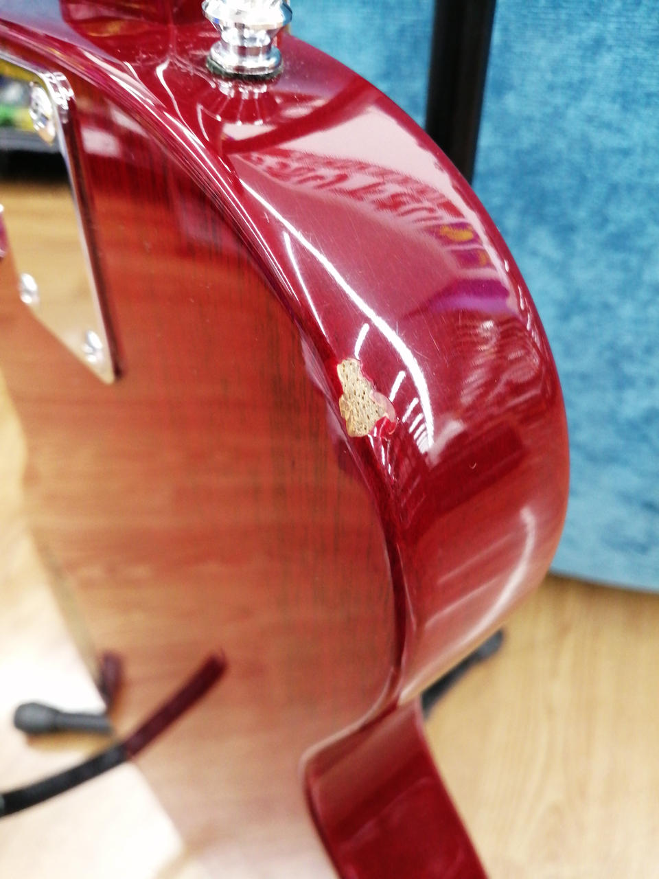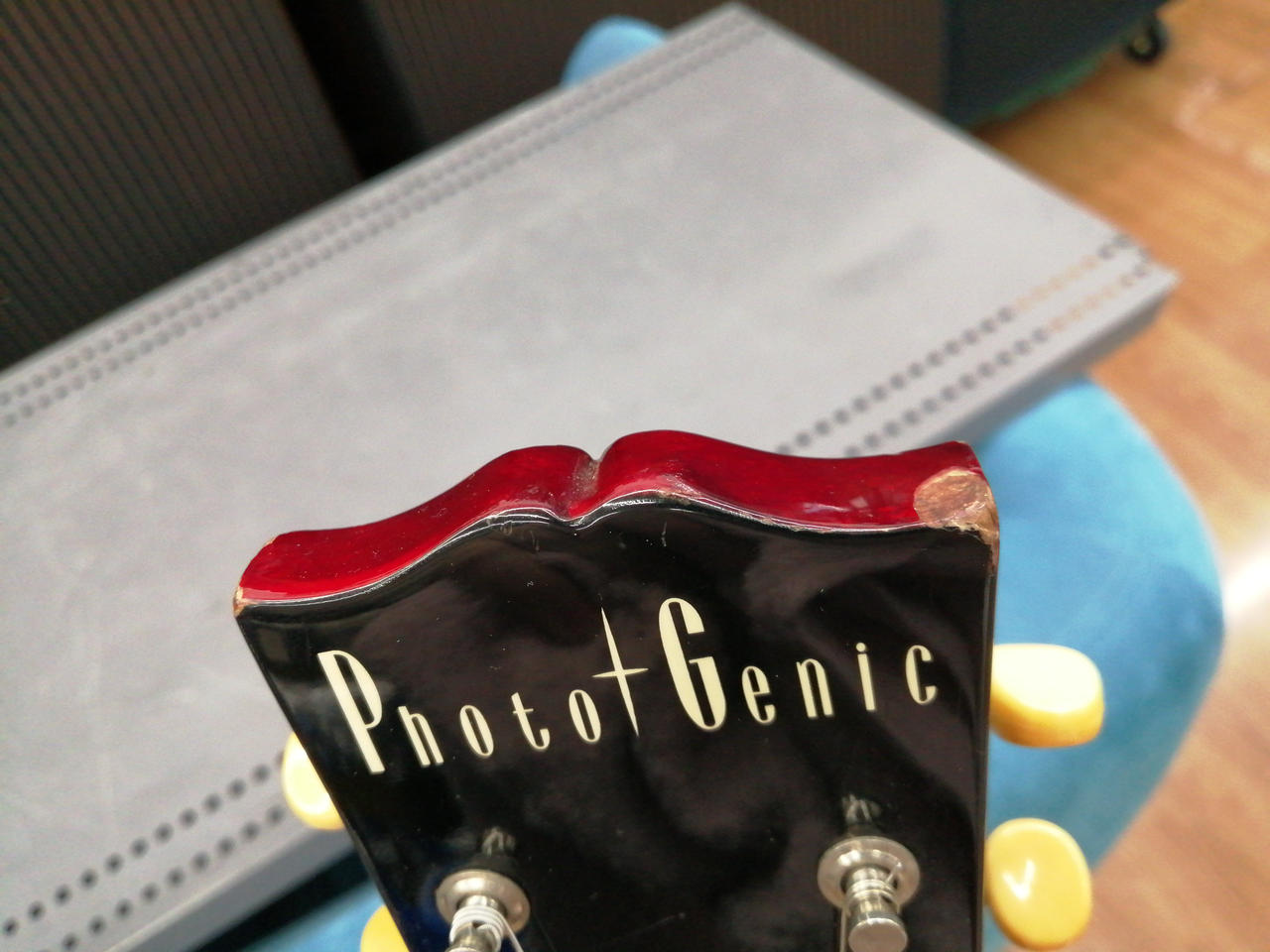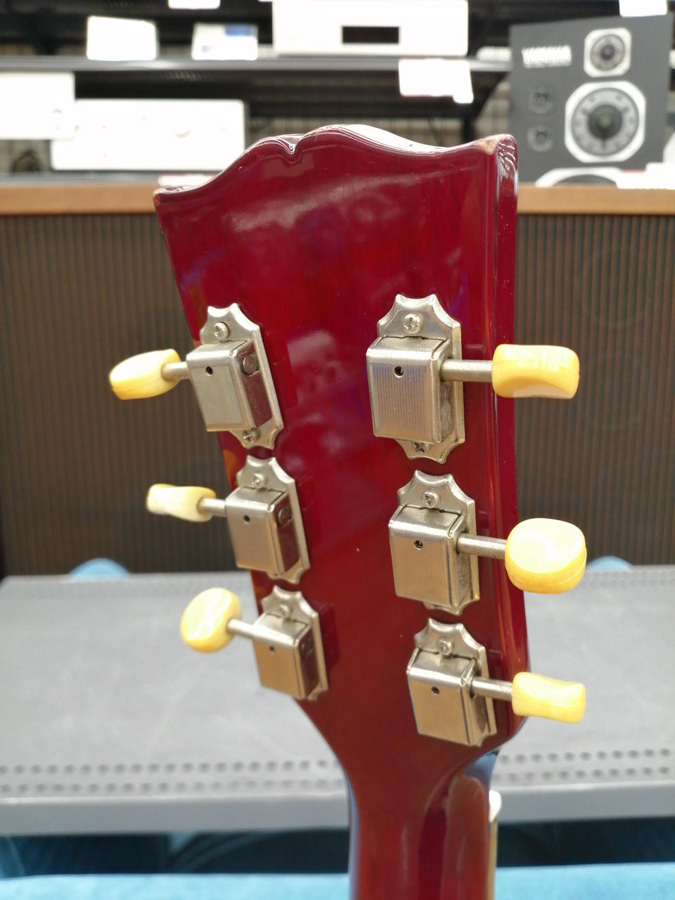P-90タイプ一発、シンプルなコントロールですが、これで手元だけで音色をコントロールしていると抜群にカッコイイ! |