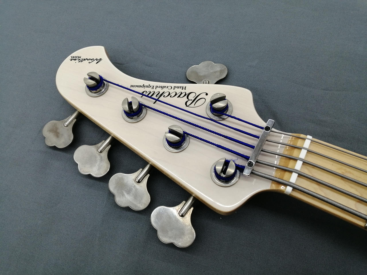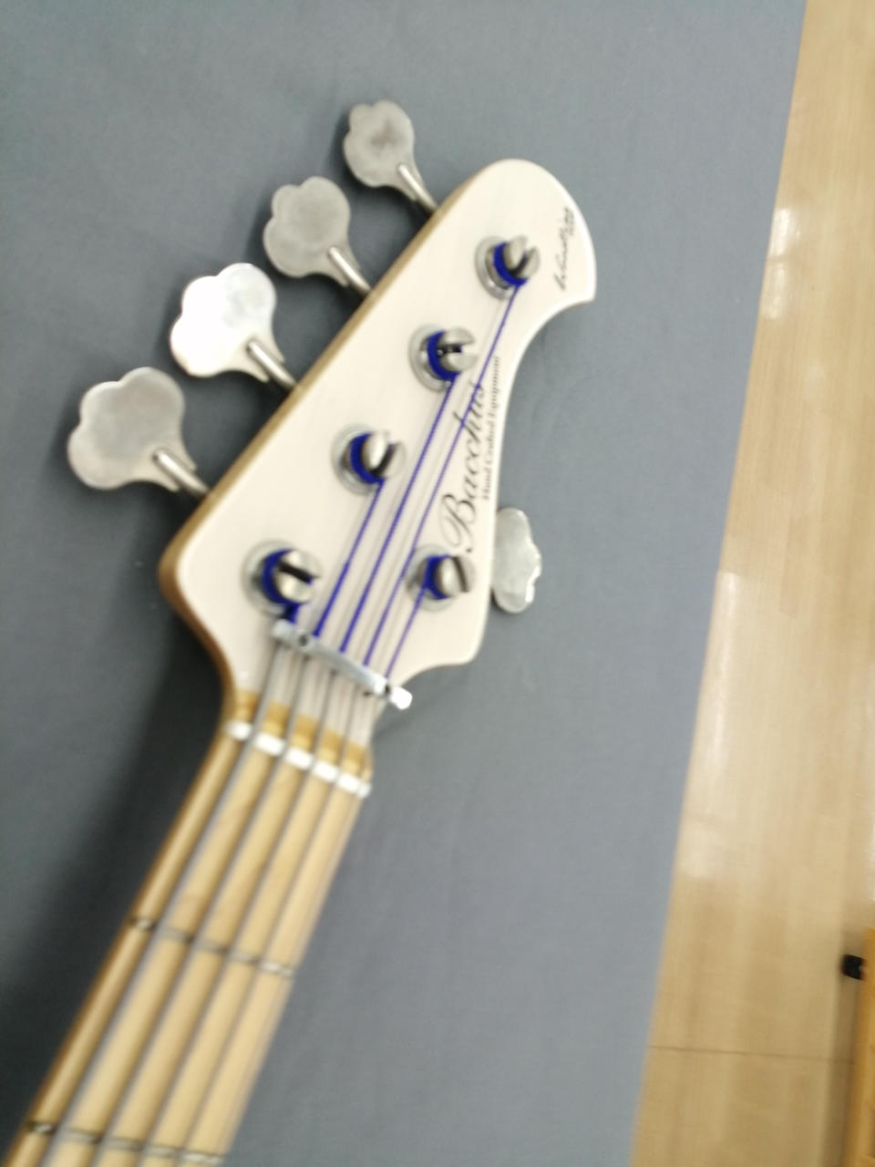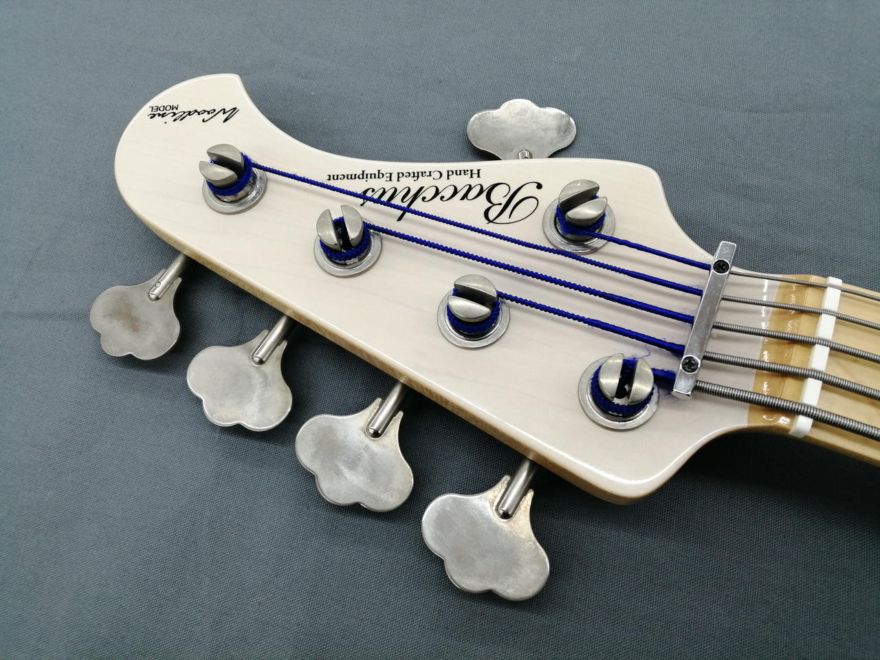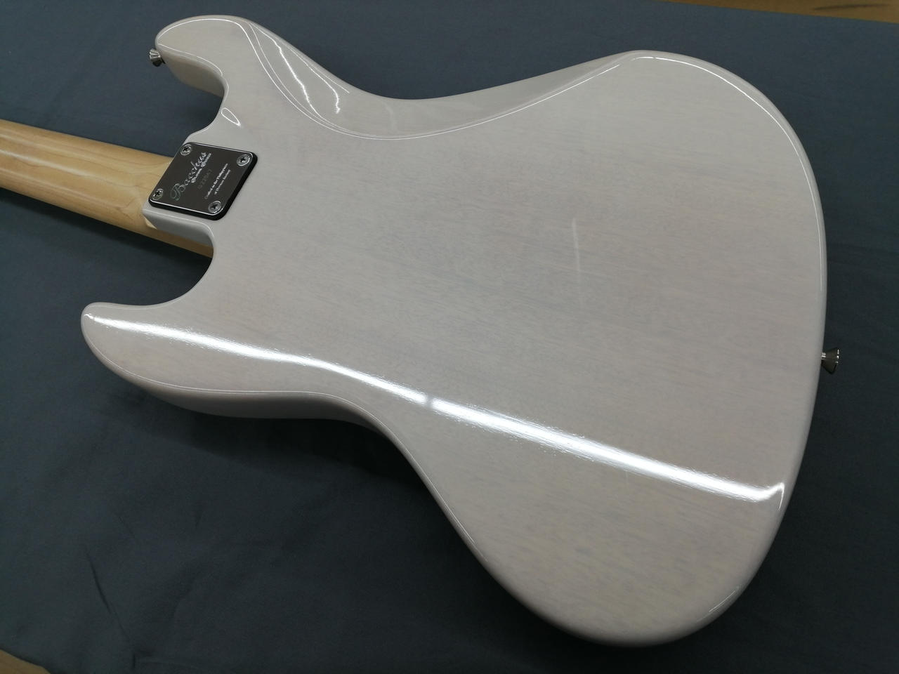 メイプルネック、マホガニーボディの5弦ジャズベース。 |