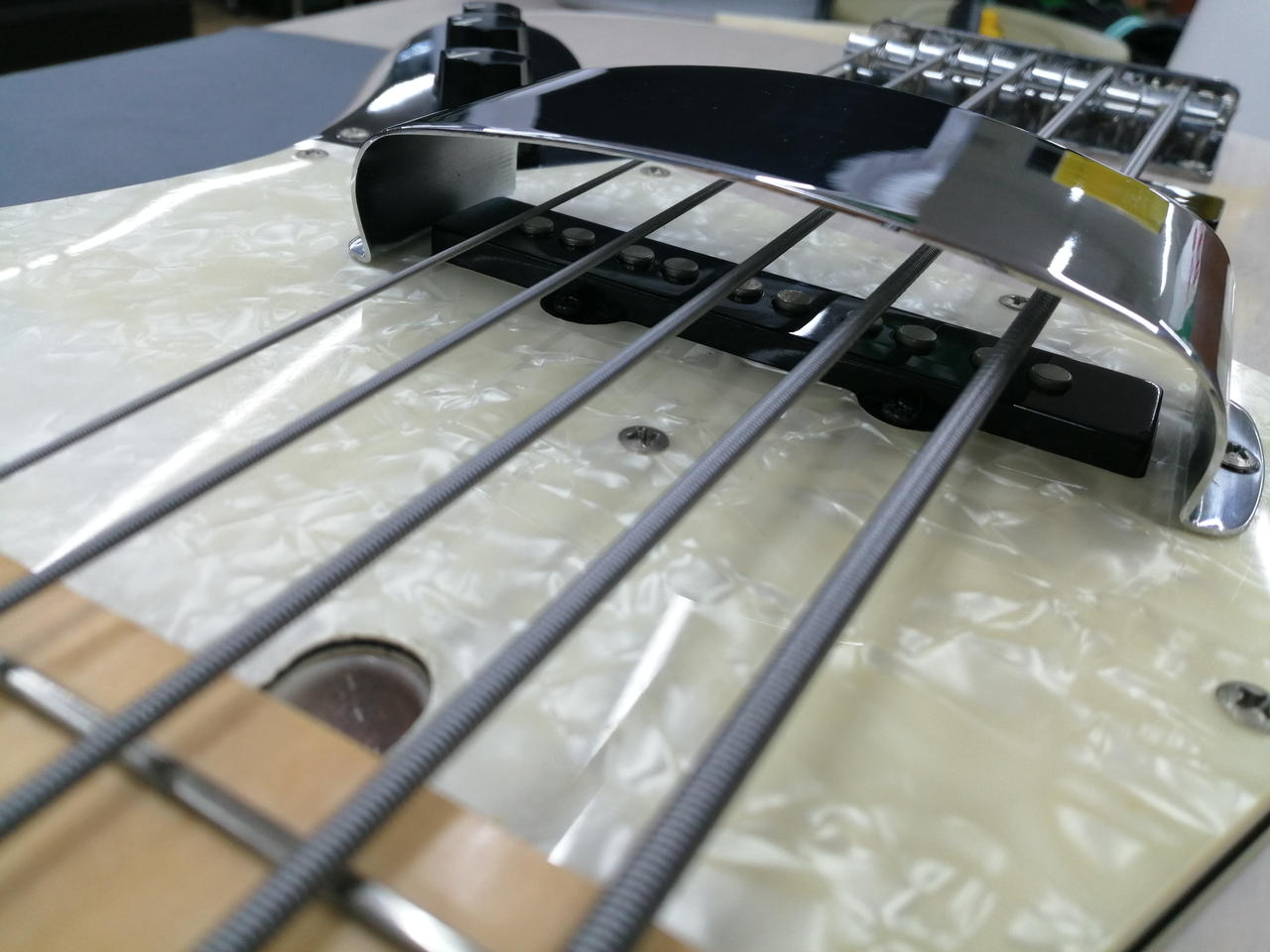 ピックアップフェンス、ソフトケース付属。トラスロッド左右余裕あり。 |