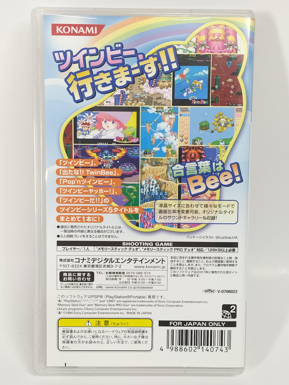 アーケード「ツインビー」「出たな!! TwinBee」「ツインビーヤッホー!」スーパーファミコン「Pop'nツインビー」ゲームボーイをカラーにリメイク「ツインビーだ!!」 |