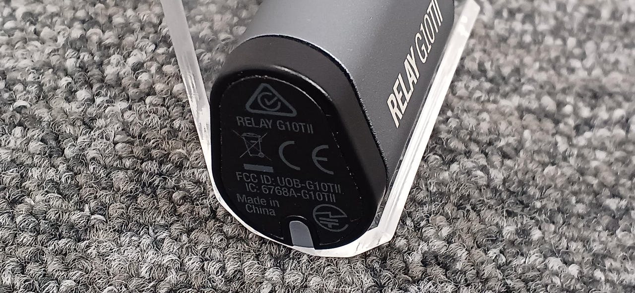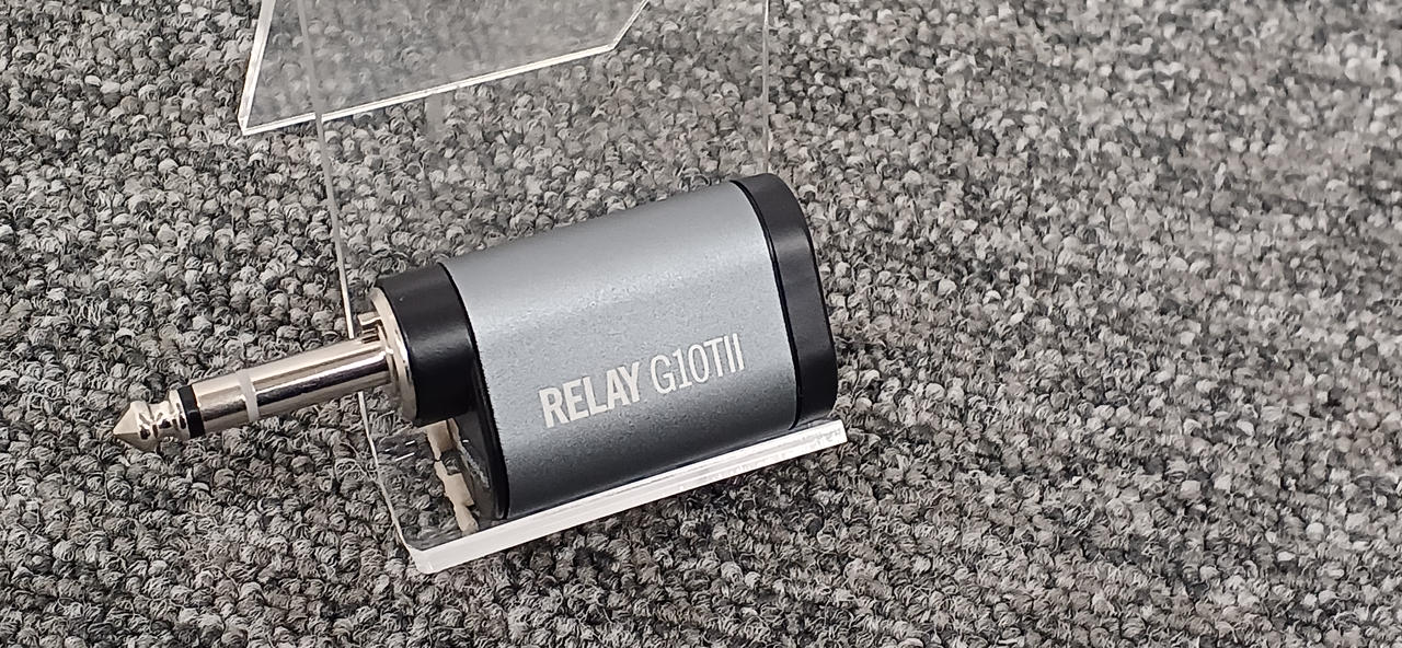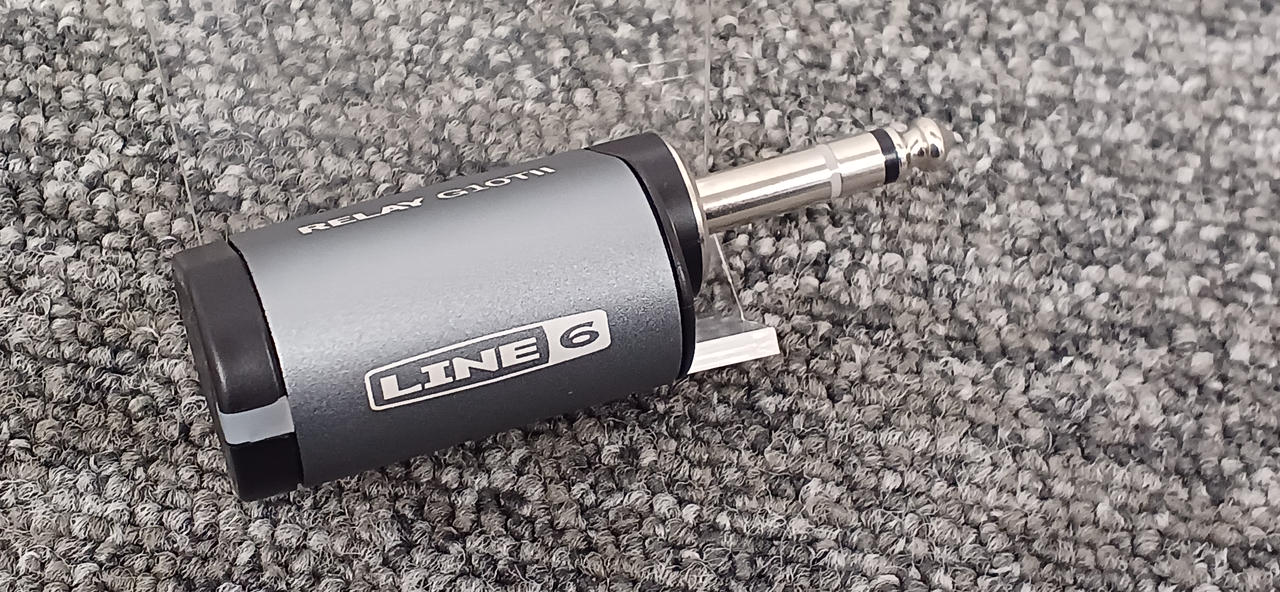 ギター用のワイヤレス・トランスミッター。充電は対応アンプのインプットジャックに差し込むだけです |