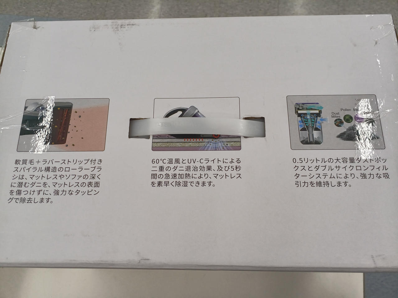 480Wのハイパワーモーターと14kPaの吸引力で、布団の奥深くに潜むアレルゲン、ほこり、ダニなどを効果的に除去 |