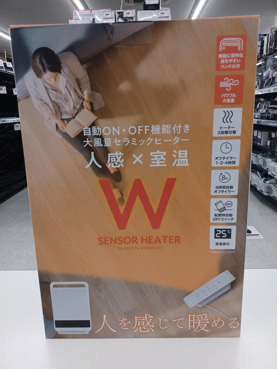 ヒーター2段階切替(強/弱)、人感センサー(自動運転)機能