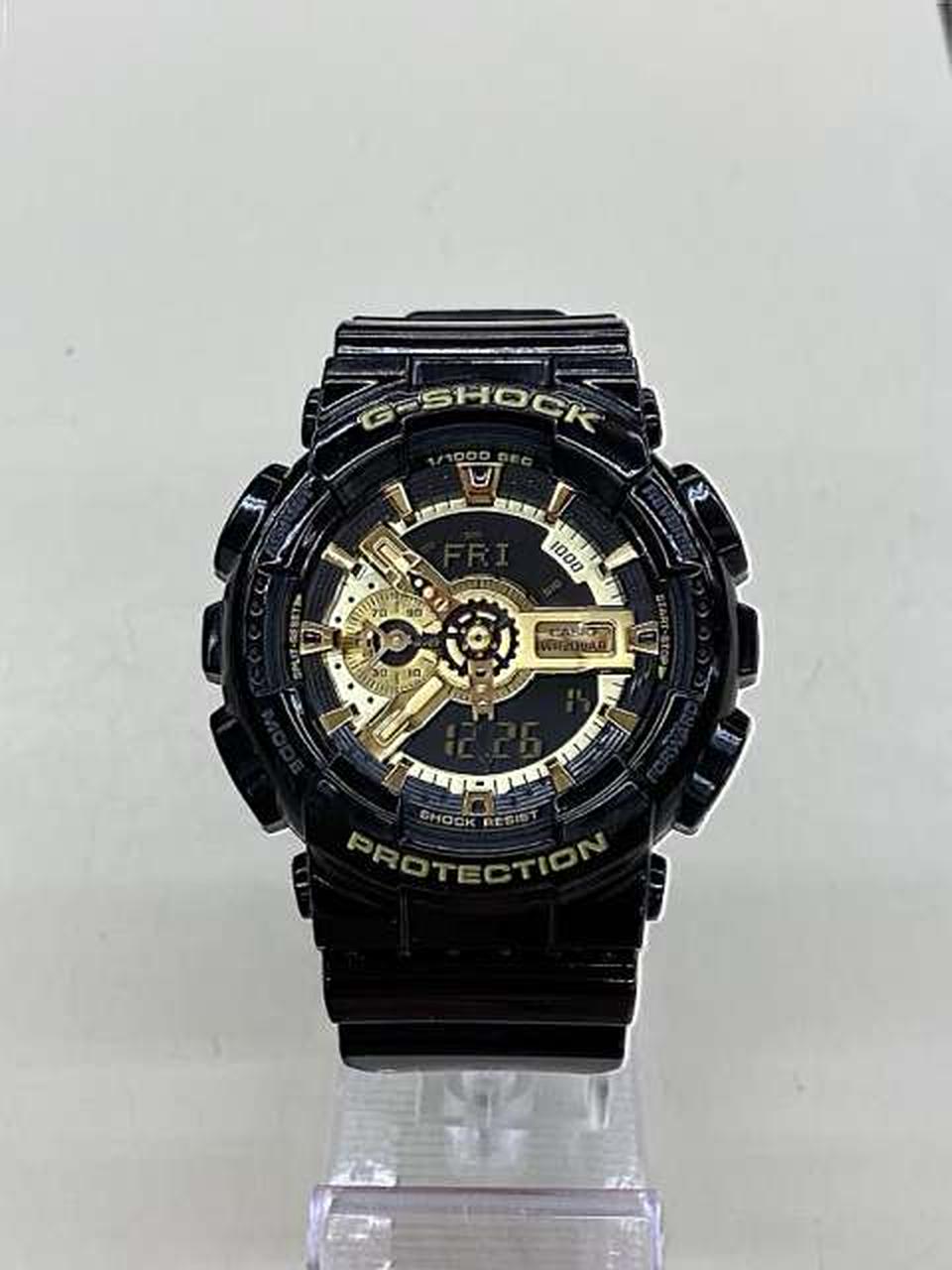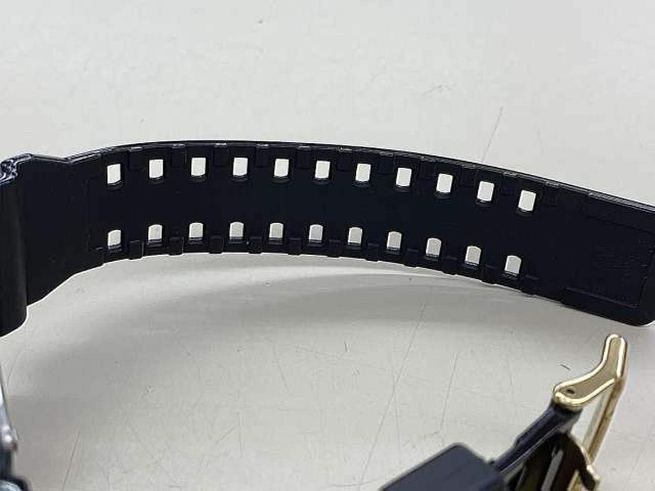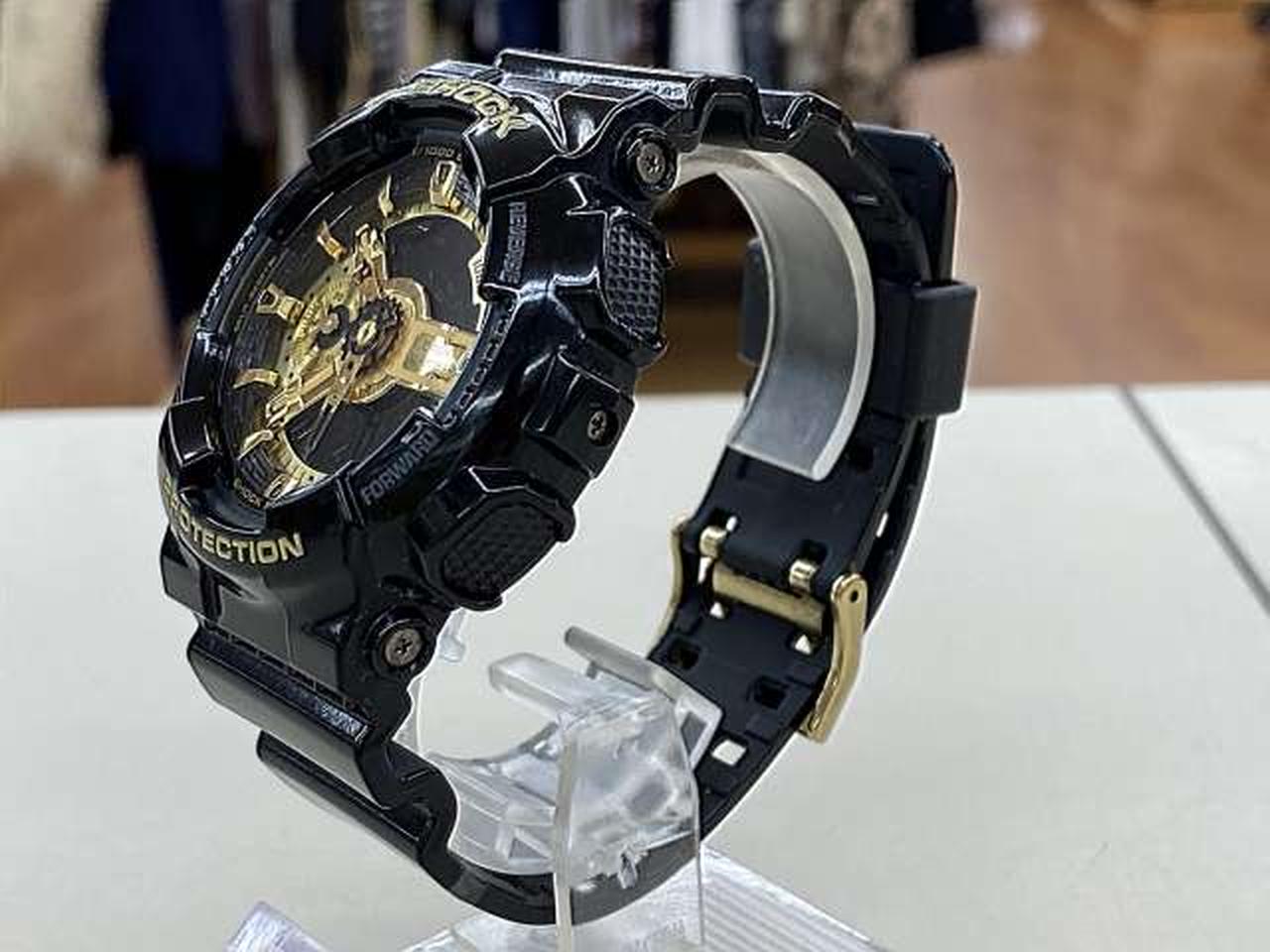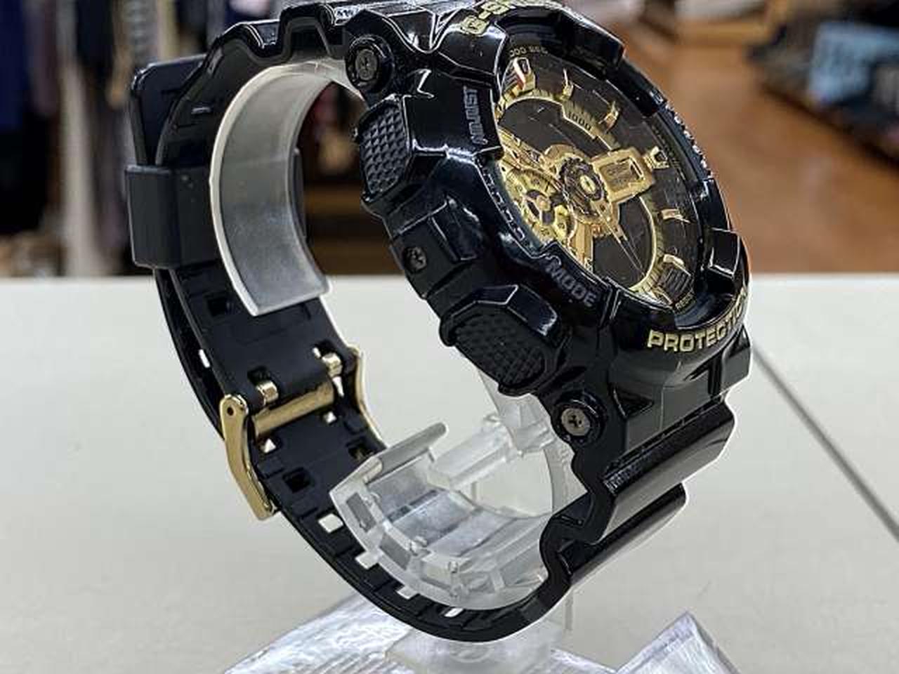 G-SHOCKらしい武骨なオールブラックのボディに、エネルギッシュに輝くゴールドをカラーリング。ボディ全体にまとった光沢塗装と随所に施したミラー加工の質感が乗じて、煌びやかでクールなデザインに仕上がったモデルです。 |