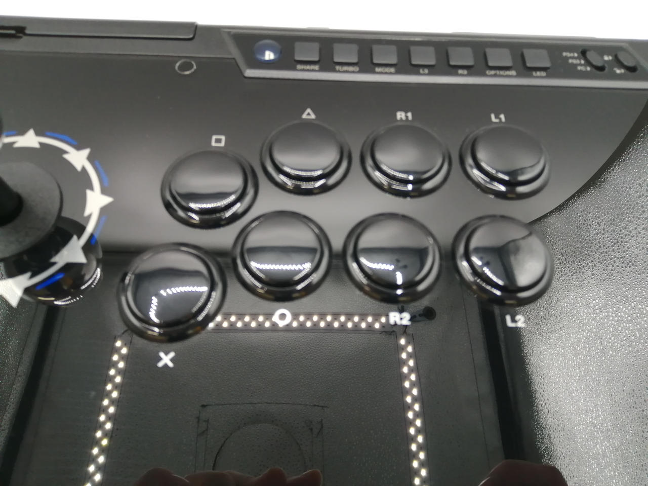 手首が触れる部分にすべり止めを採用したアケコン |