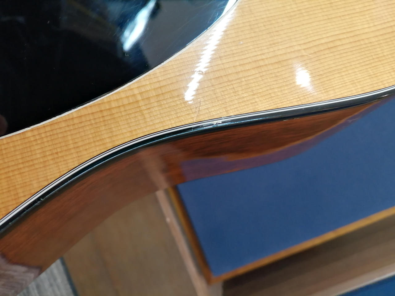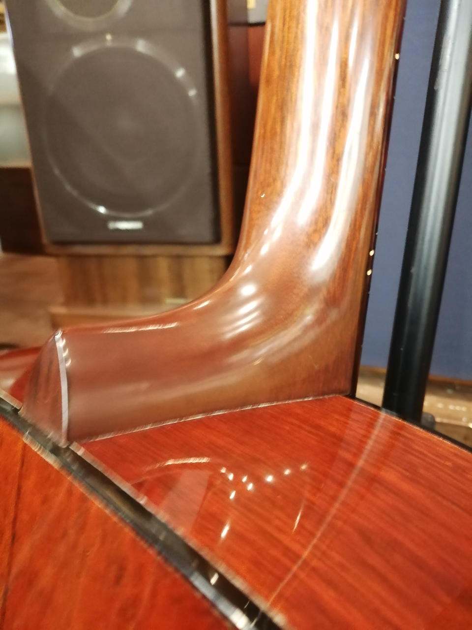 サイドバックにマホガニーを使用する事でD-28とは異なる暖かみのあるクリアなサウンドが特徴で |