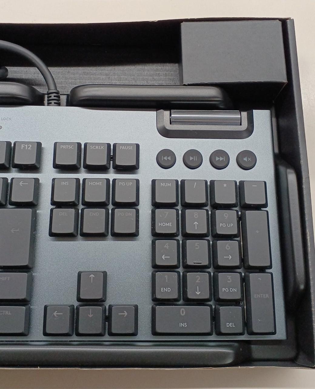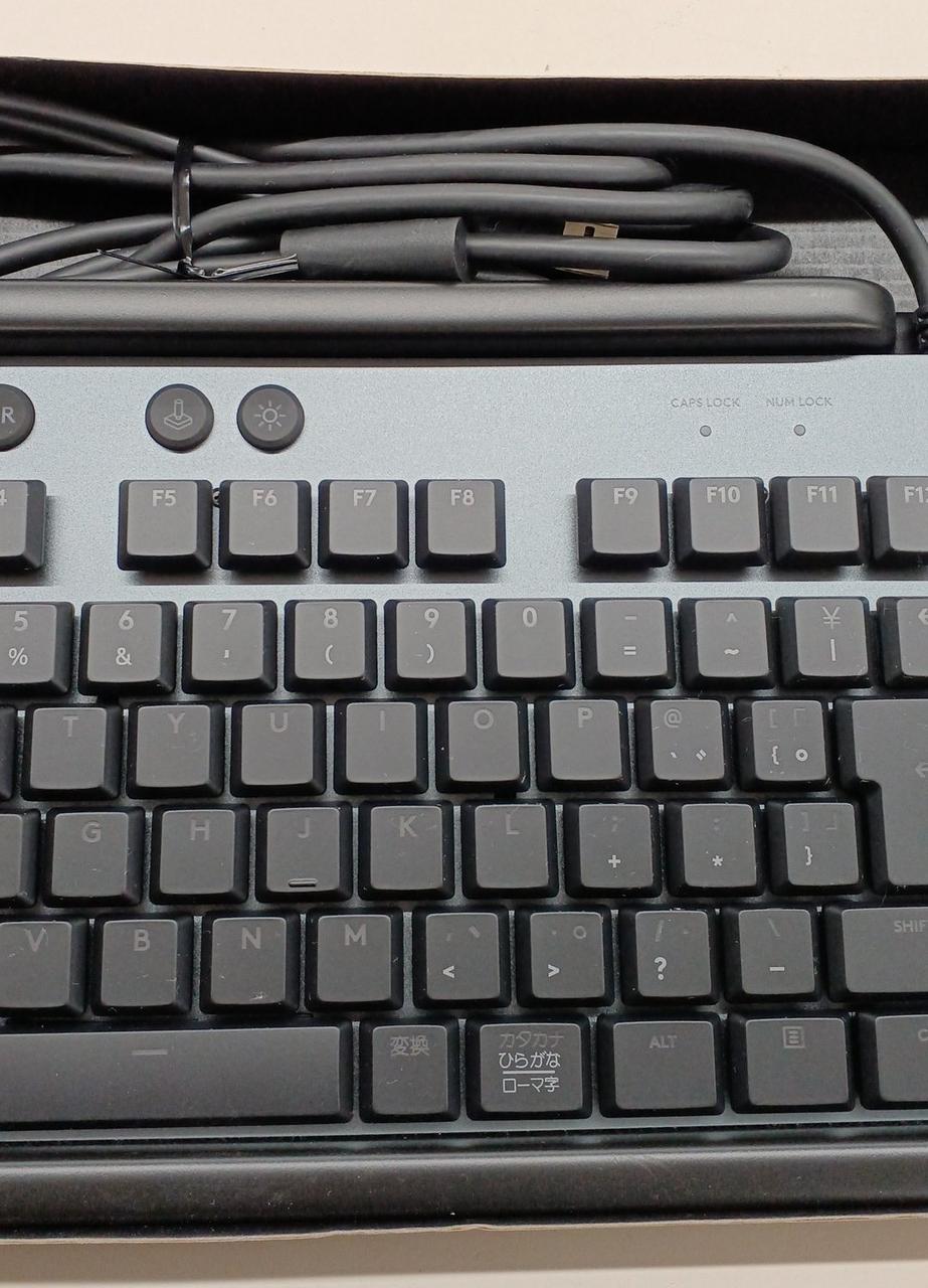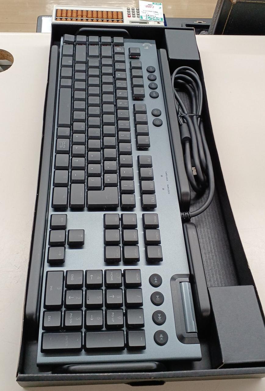 クリッキー軸のゲーミングキーボードです。 フラット/4度/8度とキーボードの高さ調節も可能LIGHTSYNC RGBやGキー、メディアコントローラーを搭載。 |
