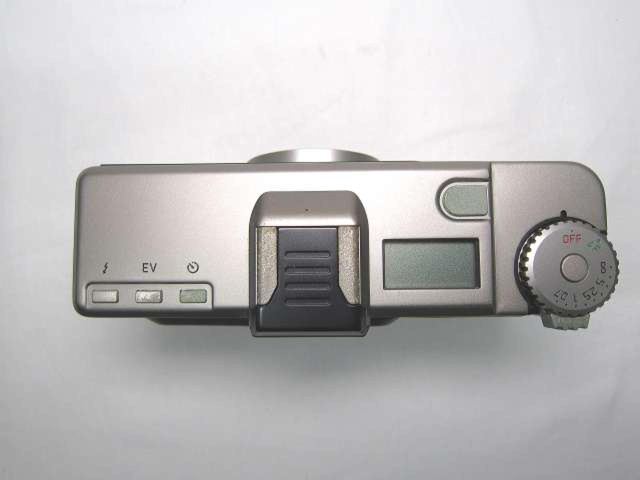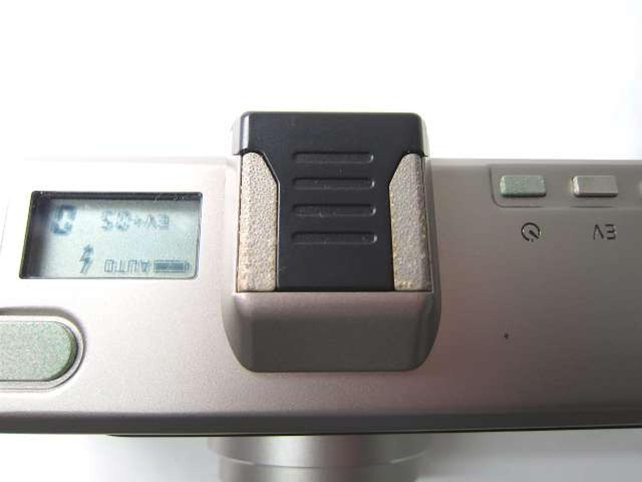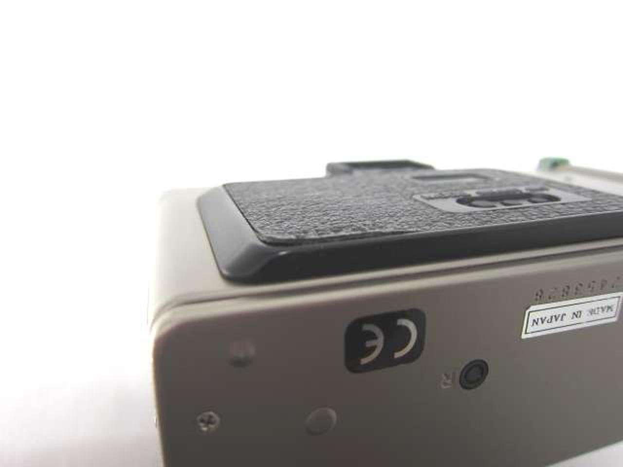 シャッターOK。フラッシュOK。フィルム巻き音OK。ズーム動作OK。液晶表示良好。各種ボタン反応OKでしたが、レンズ汚れ、アクセサリシュー周りの錆び、ボタン・レバー等に青錆びありの為ジャンク扱いとなっています。 |