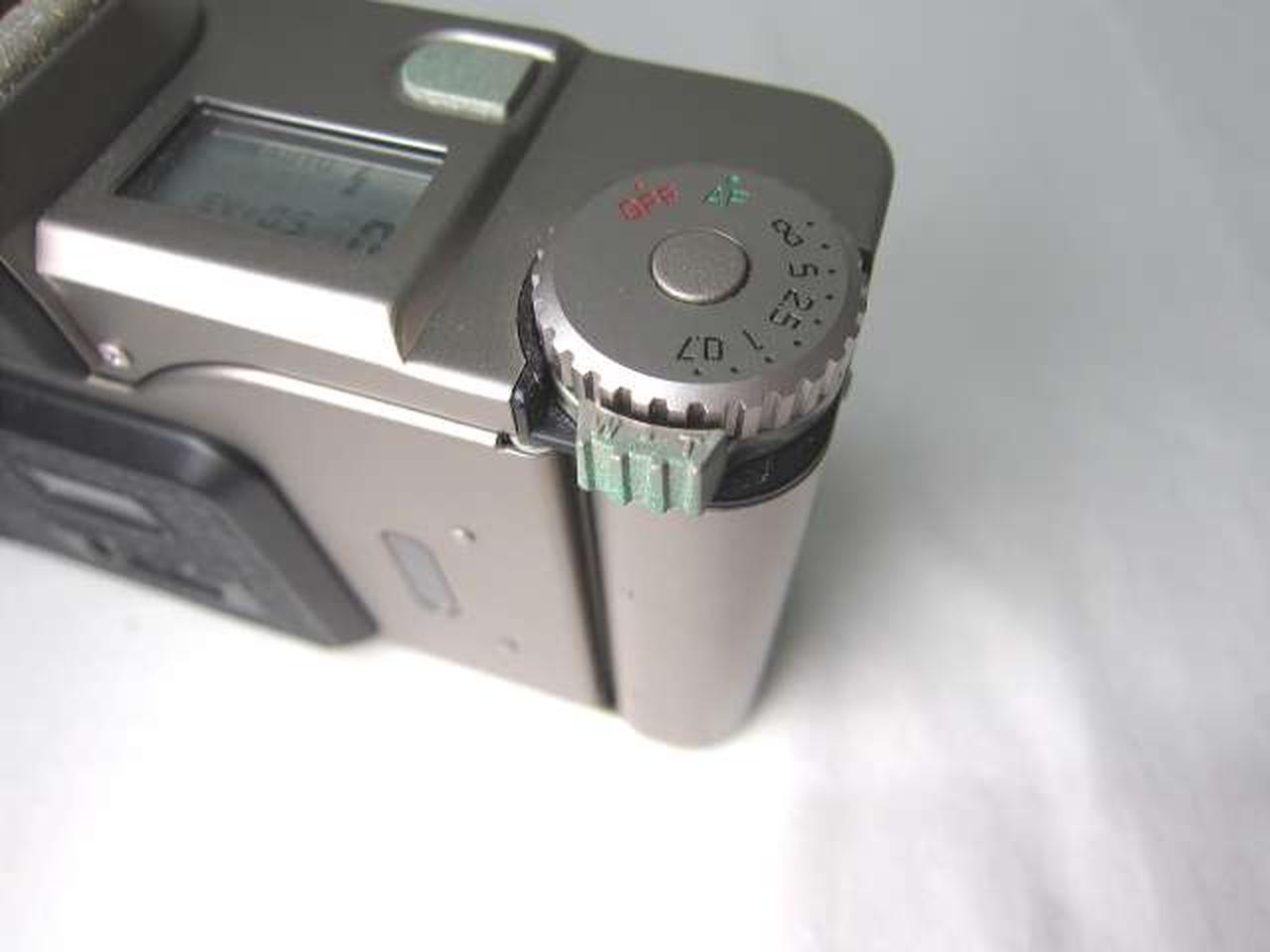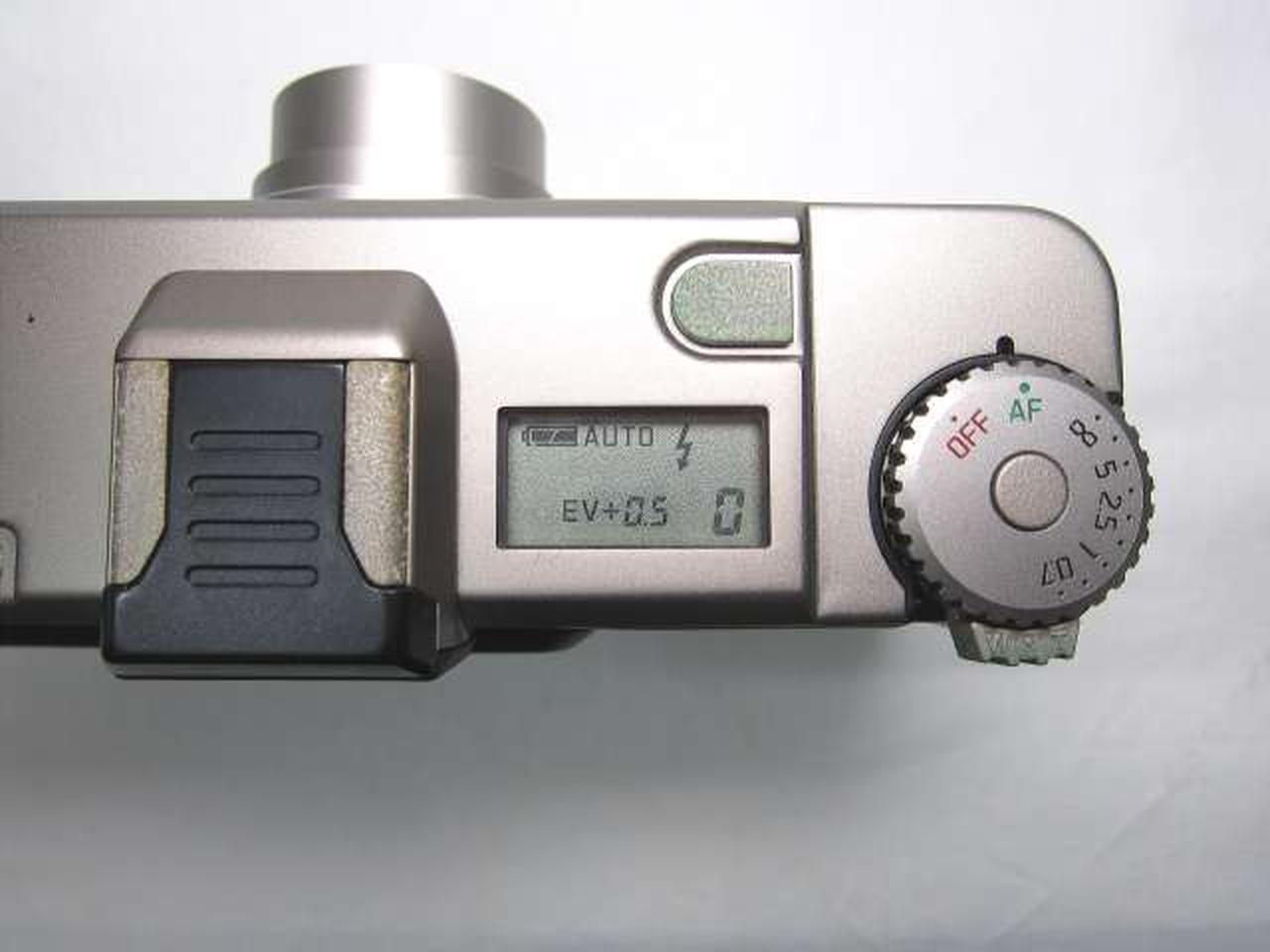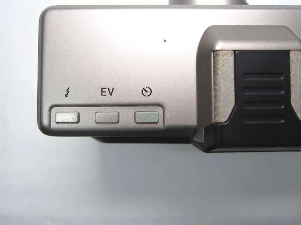 シャッターOK。フラッシュOK。フィルム巻き音OK。ズーム動作OK。液晶表示良好。各種ボタン反応OKでしたが、レンズ汚れ、アクセサリシュー周りの錆び、ボタン・レバー等に青錆びありの為ジャンク扱いとなっています。 |