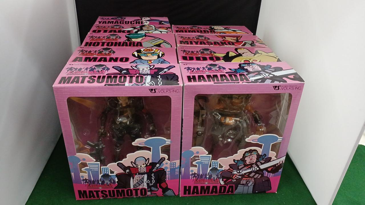 テレビ番組リンカーンの出演者、ダウンタウン浜田と松本、雨上がり決死隊宮迫と蛍原、キャイ~ンの天野とウド、さまぁ~ずの大竹と三村、山口智充の9体のフィギュアとなります |