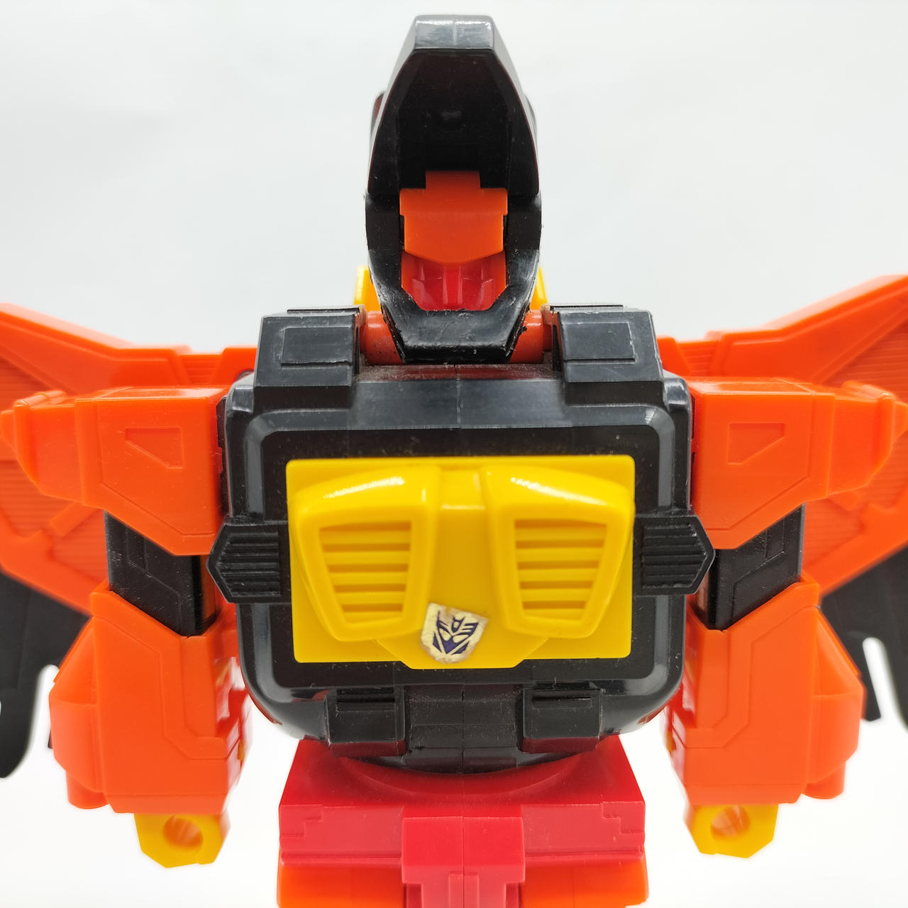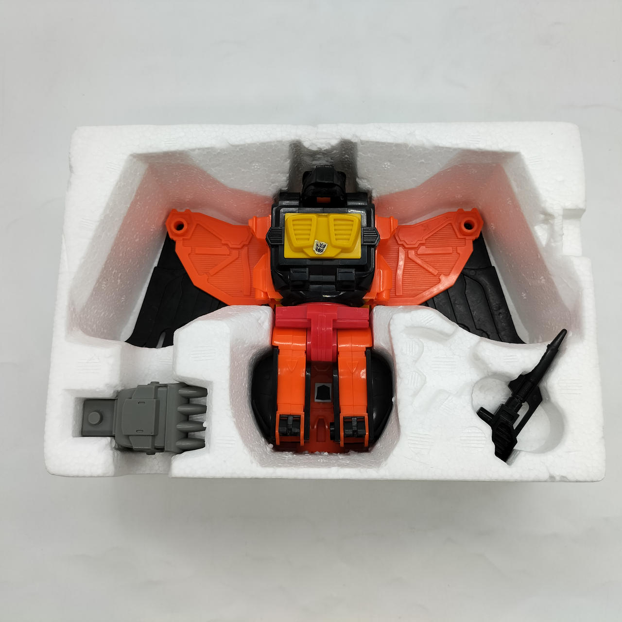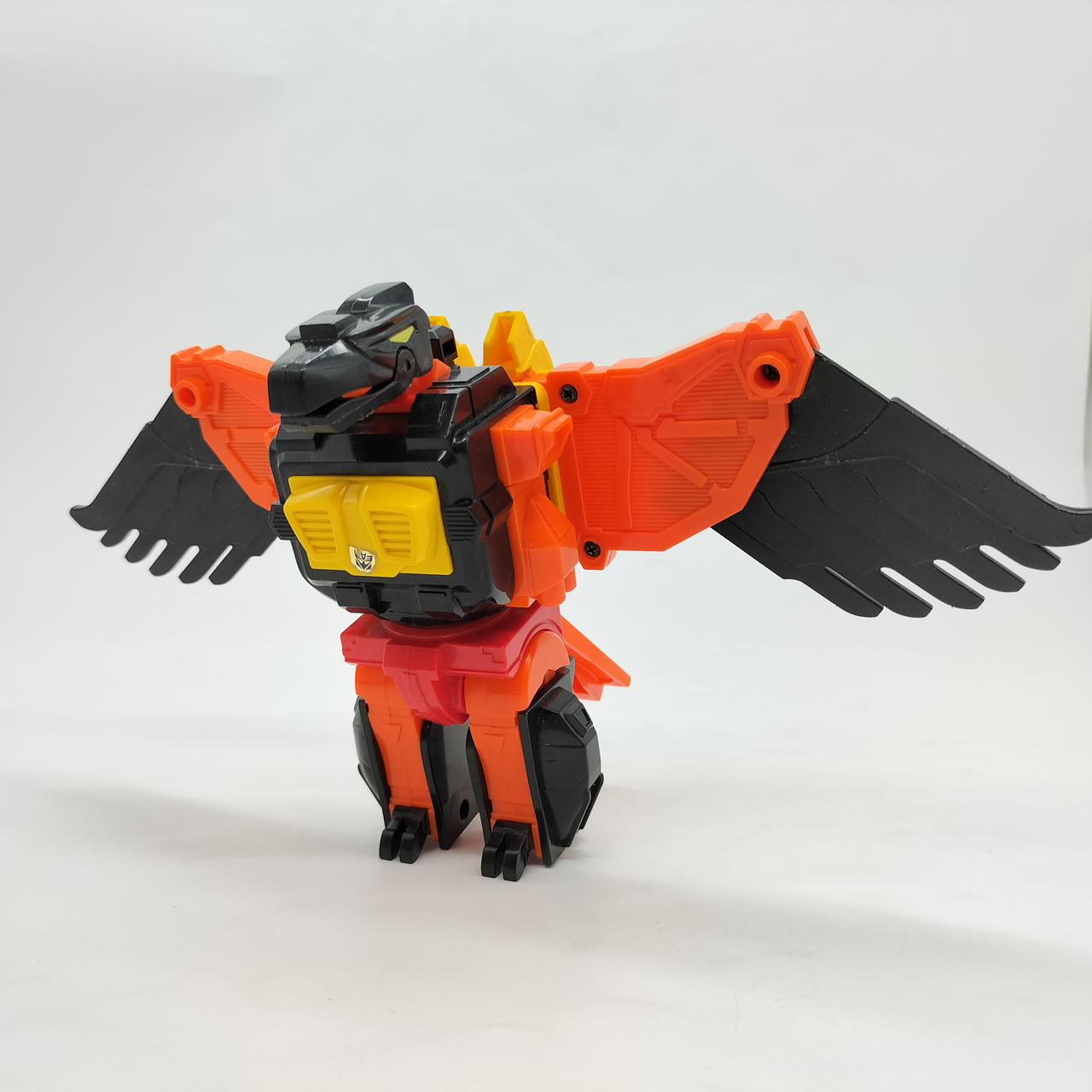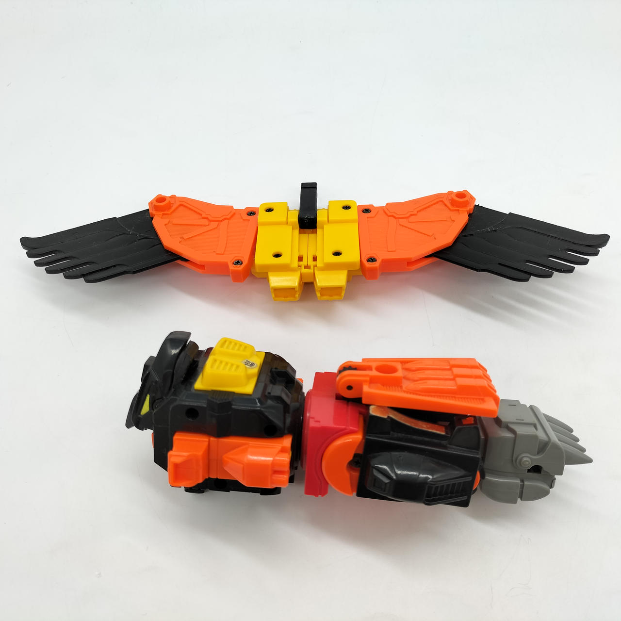 翼の重さのためかロボットモード時の自立に難があり、後ろに倒れやすいです。少し前傾にしてバランスを取ればなんとか立たせられます。 |