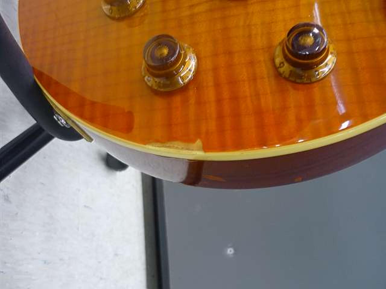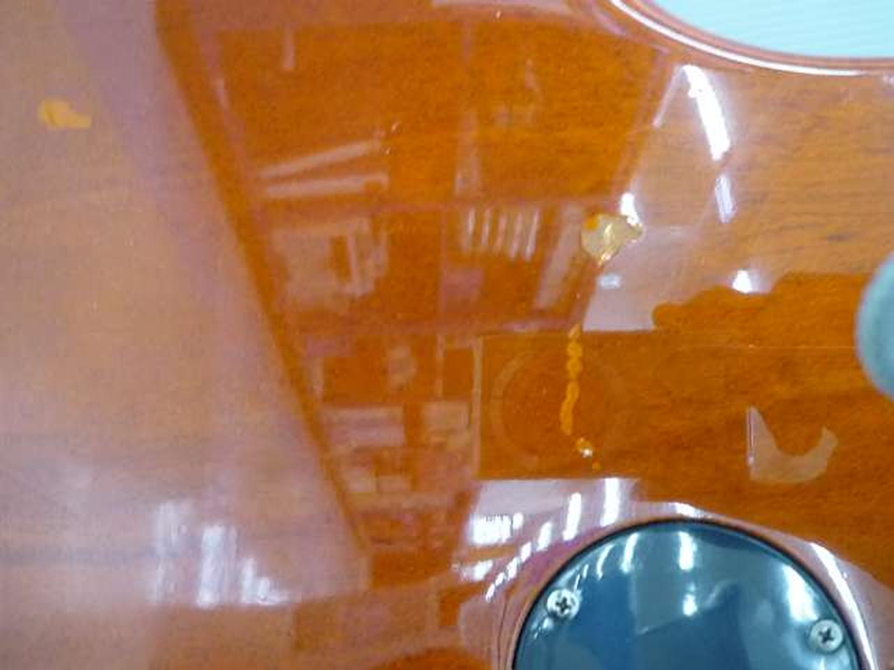 背面やネックに打痕があります。表面ボリュームノブ付近に塗装剥がれあります。 |