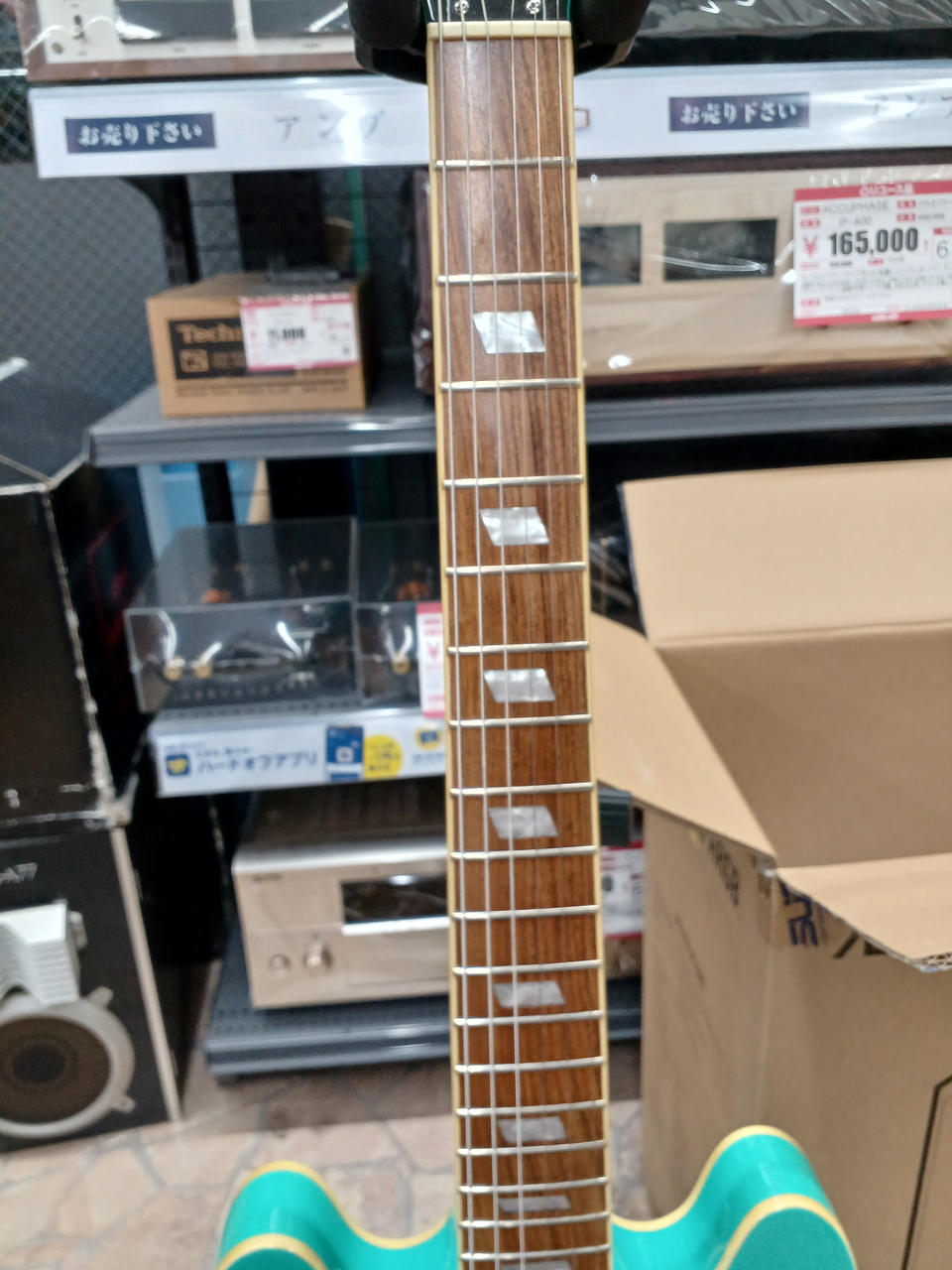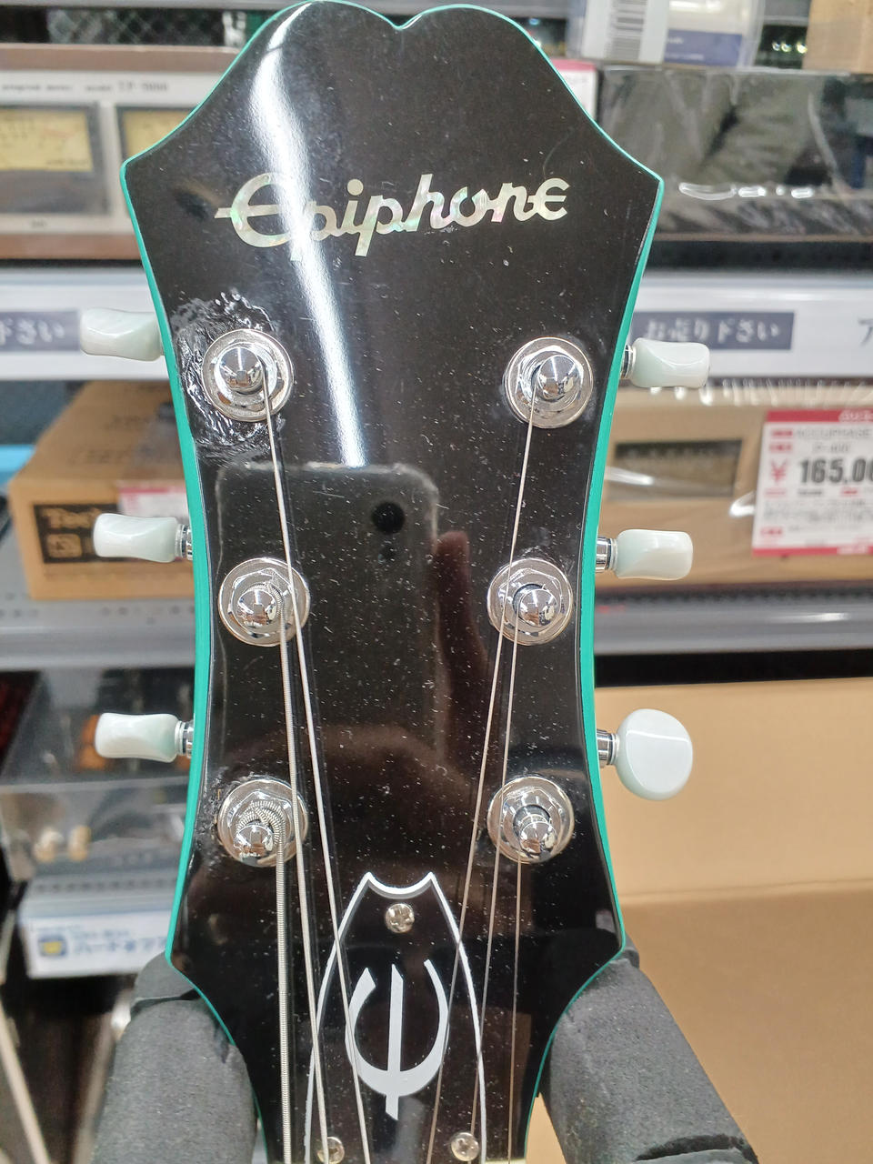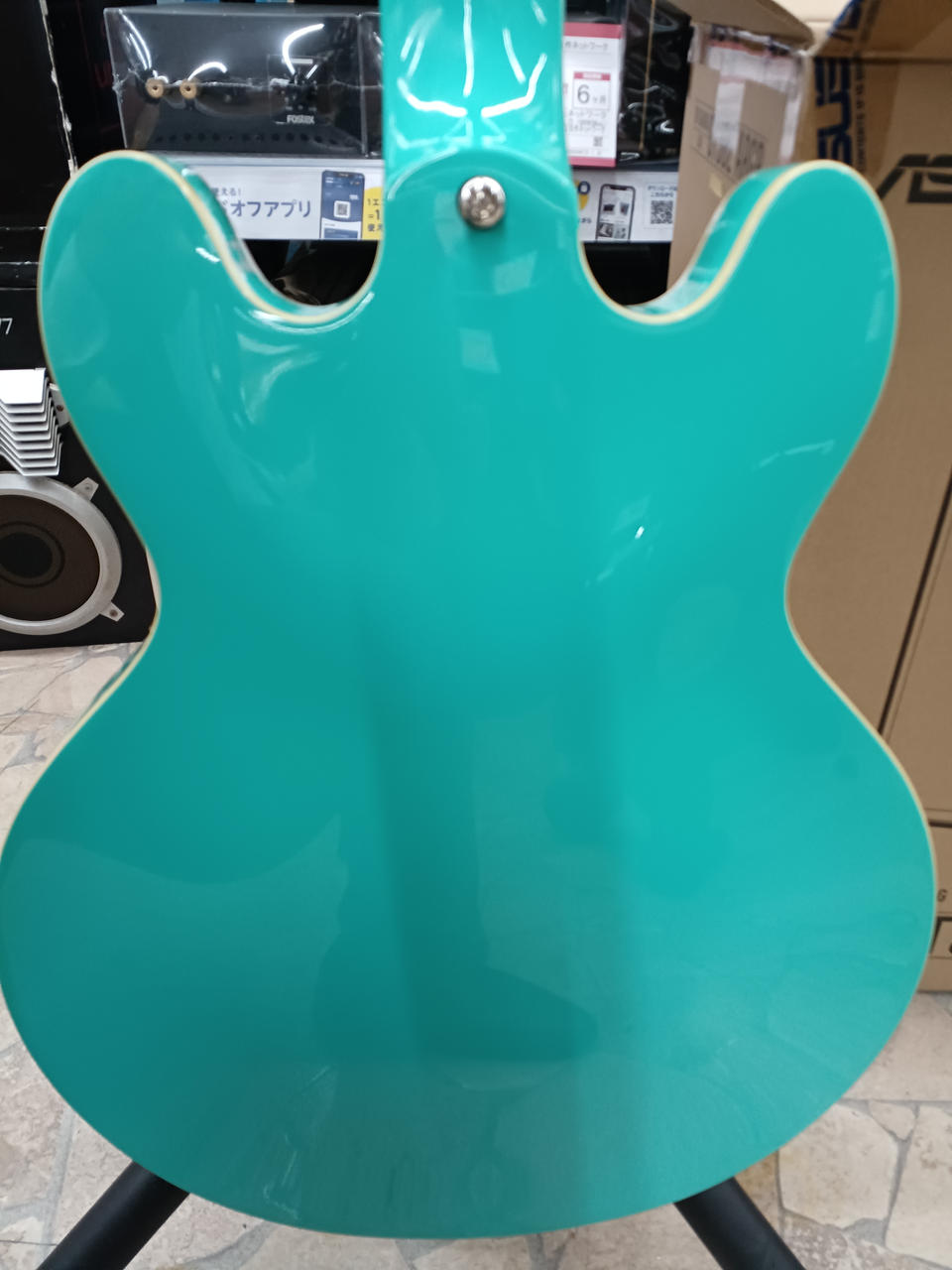 カジノ同様フルアコ構造のボディーにドッグイヤースタイルのソープバー・ピックアップ搭載 |