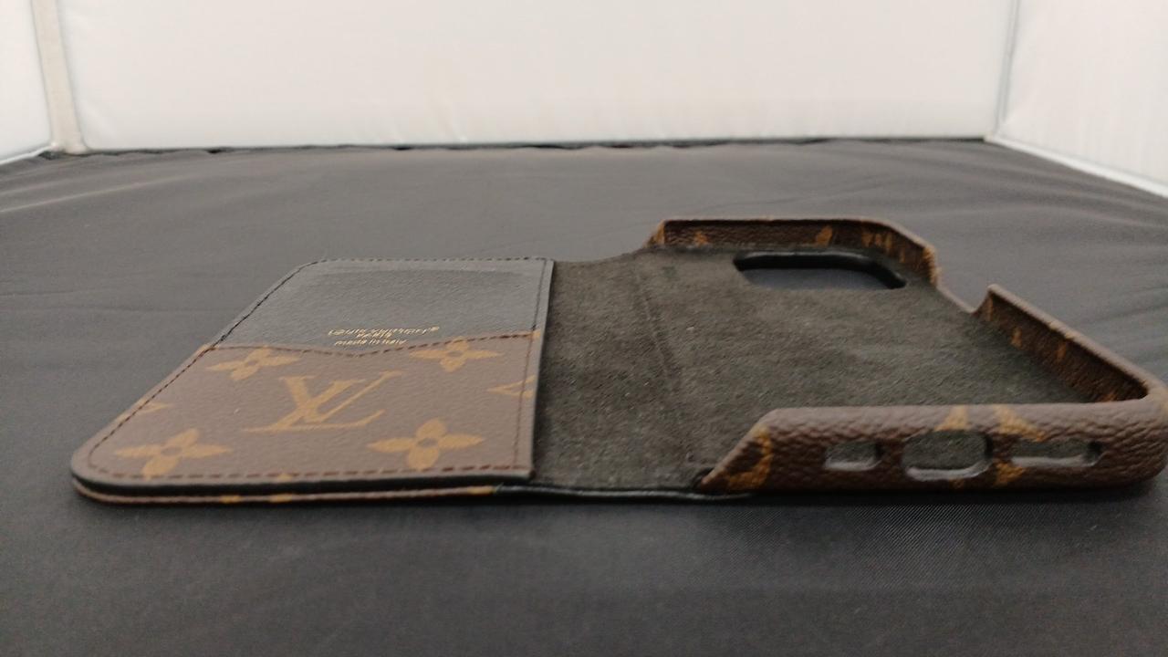モノグラム・キャンバスで仕立てた、スタイルと機能性を併せ持つ「IPHONE 15 PRO・フォリオ」。しっかりとしたケースには、衝撃や傷からiPhoneを保護するマイクロファイバーのライニングを施しました。内蔵されたマグネットにより、電磁誘導方式によるワイヤレス充電が可能です。カーフレザーのライニングを添えたフロントフラップには、名刺やクレジットカード用の3つのスロットをあしらいました。